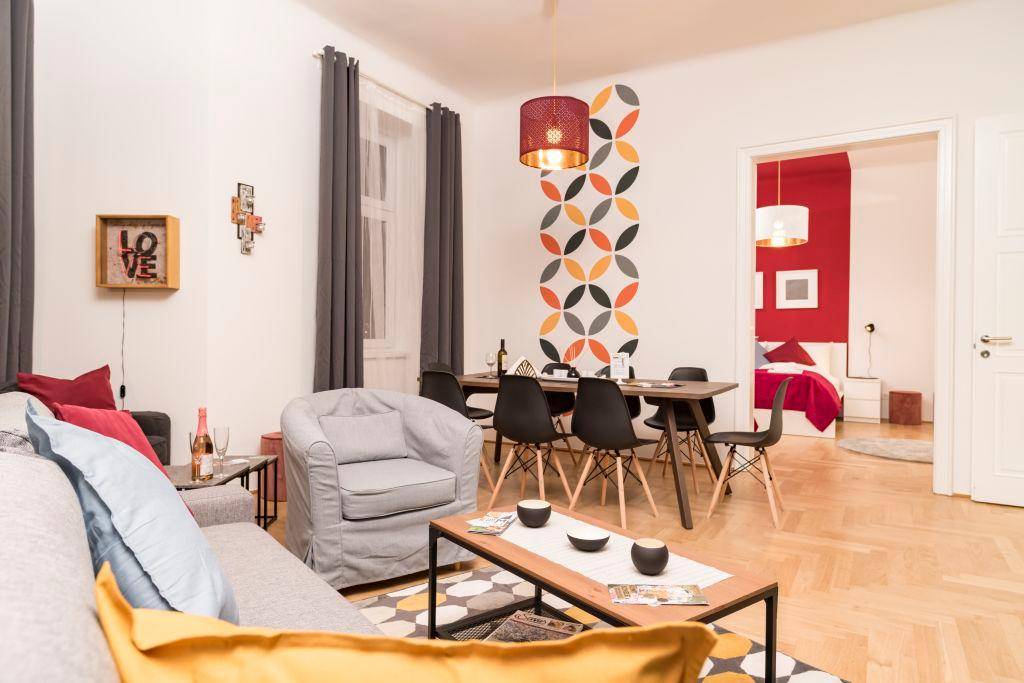 Dieses mit viel Liebe zum Detail und stilvoll eingerichtetes Apartment bietet, mit einer Größe von 82 Quadratmetern, gemütlich Platz für 7 Personen. Sie werden im größeren Schlafzimmer ein großes Doppelbett und ein Einzelbett finden, im kleineren Schlafzimmer zwei Einzelbetten und im Wohnzimmer ein gemütliches Schlafsofa für 2 Personen. Im modernen Badezimmer mit einer Badewanne lässt es sich wunderbar, nach einem langen Tag in der Stadt, entspannen. Das Apartment bietet eine Selbstversorger-Option mit kompletter grundlegender Küchenausstattung. Hier können Sie Ihre eigenen Mahlzeiten, vor und nach einem Tag der Erkundung der Stadt, zubereiten und auf dem großen Esstisch im Wohnzimmer. WLAN ist im gesamten Apartment kostenlos verfügbar. Ein Flughafentransfer kann auf Anfrage arrangiert werden. Energieausweis Dieses Gebäude unterliegt nicht den Anforderungen der EnEV.