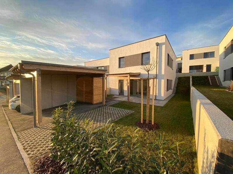 SCHLÜSSELFERTIG: Traumhaftes Reihenhaus für pures Wohnglück Beschreibung: Im Ortsteil Unterlaimbach, nur ein paar Gehminuten vom Stadtplatz Bad Leonfelden entfernt, sind 16 Rand- und 4 Mittelhäuser jeweils mit Carport oder Garage entstanden. Auf insgesamt ca. 115,50 m2 kann man seinen Wohntraum verwirklichen. Im unteren Wohnbereich befindet sich der Wohn-/Essbereich sowie die Küche. Durch die helle, offene Bauweise ist dieser Bereich besonders einladend. Gemütliche Stunden mit der Familie oder gesellige Treffen mit Freunden - hier ist auf ca. 40,52 m2 Wohlfühlen angesagt! Ebenfalls auf der unteren Ebene befinden sich ein WC, der Abstellraum sowie die Heiztechnik. Über die Treppe gelangt man in den privaten Wohnbereich mit den drei Schlafräumen. Das Badezimmer ist mit Badewanne und einer Dusche ausgestattet. Auch ein separates WC befindet sich im Obergeschoss. Dank dem eigenen Garten hat man in den warmen Monaten ein Zimmer draußen dazugewonnen. Auf der ca. 19,49 m2 großen Terrasse kann man im Sommer sein Frühstück genießen, Grillfeste feiern oder einfach die frische Luft genießen. Zum Haus gehört auch ein Cartport mit 2 Abstellplätzen. Sie haben sich schon allein durchs Lesen verliebt? Dann sollten Sie sich den Ausblick nicht entgehen lassen. Für einen Besichtigungstermin oder zur Klärung von offenen Fragen steht Ihnen Frau Mag. Sattlegger unter +43 664 / 887 882 07 gerne zur Verfügung. Kosten: Der Kaufpreis für Reihenhaus Nr. 9 in der schlüsselfertigen Ausführung beträgt EUR 339.970,-. Inklusivleistungen: Carport, Terrassenüberdachung, Terrassenplatten + Einfassung, Kellerersatzraum, Spachteln/Malen weiß, Stiege Eiche + Spiegel, Landhausdiele Eiche, Fliesen + Verlegearbeiten, Innentüren weiß, Glastüre (Diele - WZ), flächenbündige Türen nur im EG, komplette Sanitärausstattung mit Waschtisch im Bad, Duschglas, Garten gefräst/besamt Provision: Das Erfolgshonorar der Homeland Immobilien GmbH für die Vermittlungstätigkeit sowie aller damit zusammenhängenden Tätigkeiten beträgt bei Zustandekommen eines gültigen Rechtsgeschäftes 3% zzgl. 20% USt. Rechtsgrundlage der Vermittlungstätigkeit sowie der in diesem Zusammenhang stehenden Provison ist die Immobilienmaklerverordnung 1996 idgF. Besichtigungen und Beratungen erfolgen kostenlos. Sonstiges: Auf das wirtschaftliche Naheverhältnis zwischen dem Abgeber und der Homeland Immobilien GmbH wird hingewiesen. Der Vermittler ist als Doppelmakler tätig. Es handelt sich um ein unverbindliches, freibleibendes Angebot. Wir möchten Sie darauf hinweisen, dass es sich bei den angegebenen Maßen um Circa-Angaben handelt. Die angegebenen Angaben basieren auf Informationen des Eigentümers und wurden von der Homeland Immobilien GmbH nicht überprüft. Für die Richtigkeit wird keine Haftung übernommen. Irrtümer, Druckfehler und Änderungen vorbehalten. Energiedaten: Energieausweis: liegt vor HWB: 41,00