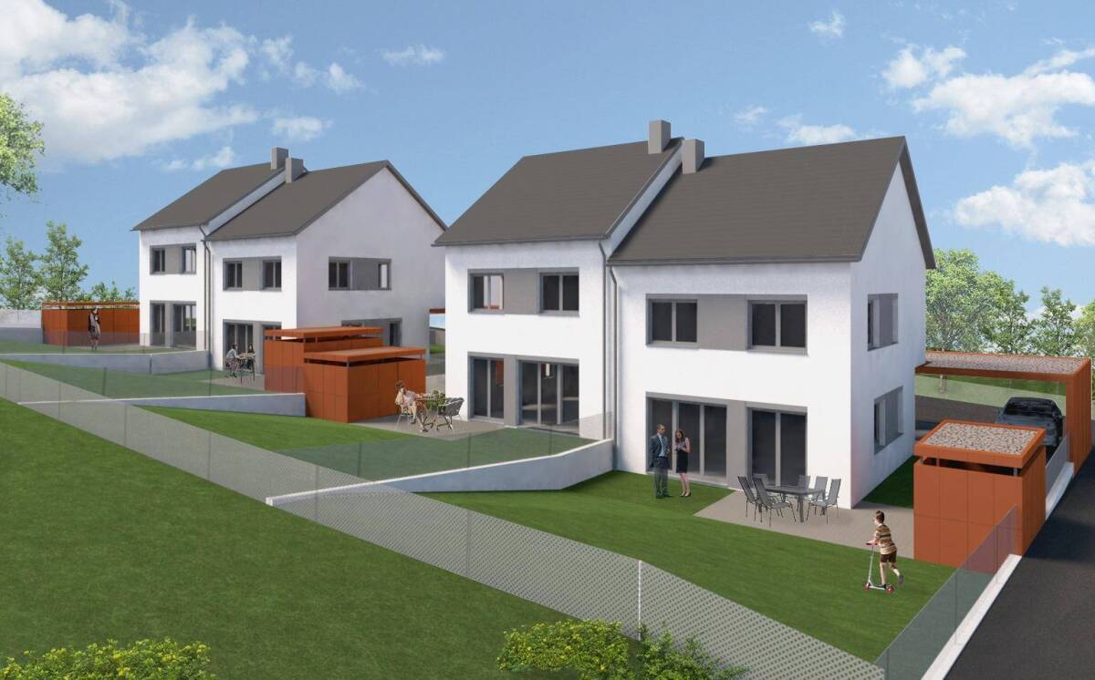 Adresse der Reihenhausanlage: Am Sonnenhang, 3804 Allentsteig Das Bauvorhaben umfasst vier Reihenhäuser in Mietkauf. Jedem Reihenhaus ist ein Carport mit 2 Abstellplätzen zugeordnet. In den vorhandenen Eigengärten wird bauseits ein Nebengebäude errichtet, in welchem sich die Anlage der Haustechnik befindet. Direkt dahinter wird die Außeneinheit der Wärmepumpe aufgestellt. Ebenso verfügt jede Partei über einen eigenen Vorgarten und eine Terrasse, welche vom Wohnzimmer aus zugänglich ist. Die Mietkauf Reihenhäuser haben eine Wohnfläche von 104,04 m² mit Terrasse und Eigengarten bzw. 2 KFZ-Stellplätze. Jedes Reihenhaus ist mit einer kontrollierten Wohnraumlüftung und Rollläden ausgestattet. Sonderwünsche sind nach Bedarf noch möglich. Der Dachboden wird für den etwaigen nachträglichen Ausbau vorbereitet. Wenn Sie Interesse haben bzw. eine Informationsbroschüre anfordern möchten, bitten wir um Kontaktaufnahme mit Frau Wagner von der Wohnbaugesellschaft Kamptal GmbH – 02982/3111 – 37 oder stefaniewagner@kamptal-gbv.at. Fertigstellung ist geplant im Frühjahr 2021.