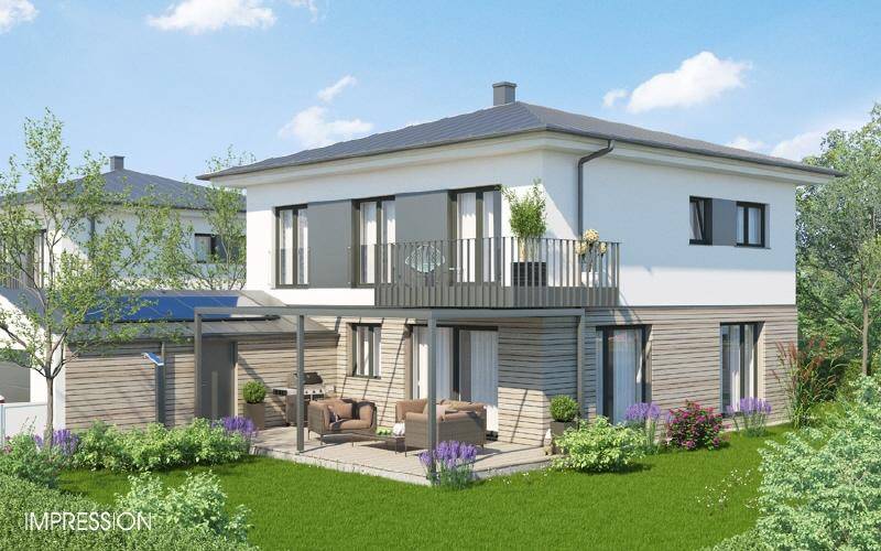 Die elegante wie schlicht moderne Architektur mit holzverkleidetem Sockel und Zeltdach sowie der kluge, annähernd quadratische Grundriss sind nur einige der vielen Vorzüge, die die Qualität der beiden Familien-Klassiker spürbar machen. Auf ca. 159 m² Wohnfläche mit tollen Außenflächen sowie einer Doppelgarage und einem großzügigen ebenerdigen Lagerraum gestaltet sich der Alltag super angenehm und es bleibt Zeit zum Wohlfühlen, Feiern und Entspannen. Im Erdgeschoß ist Family time angesagt. Der weitläufige Wohnraum mit schickem Kamin teilt sich in gemütlichen Loungebereich zum Relaxen und großen Essplatz, wo alle in gelöster Atmosphäre miteinander essen, lachen und Pläne schmieden. Die offen angrenzende Küche kann mit stylischer Bar fürs schnelle Frühstück ausgeführt werden. Auf der Südwestseite ist die Terrasse ein ideales Outdoor-Wohnzimmer, wo sich die Sonne bis abends genießen lässt. Im Obergeschoß erwartet Sie der luftige Privatbereich, wo die Familienmitglieder für sich sein können. Das komfortable Elternschlafzimmer samt Balkon, Ankleide und großzügigem Masterbad bietet beste Voraussetzungen für erholsamen Schlaf. Die beiden reizenden Kinderzimmer verfügen über ein eigenes Bad. HWB 39 fGEE 0,80