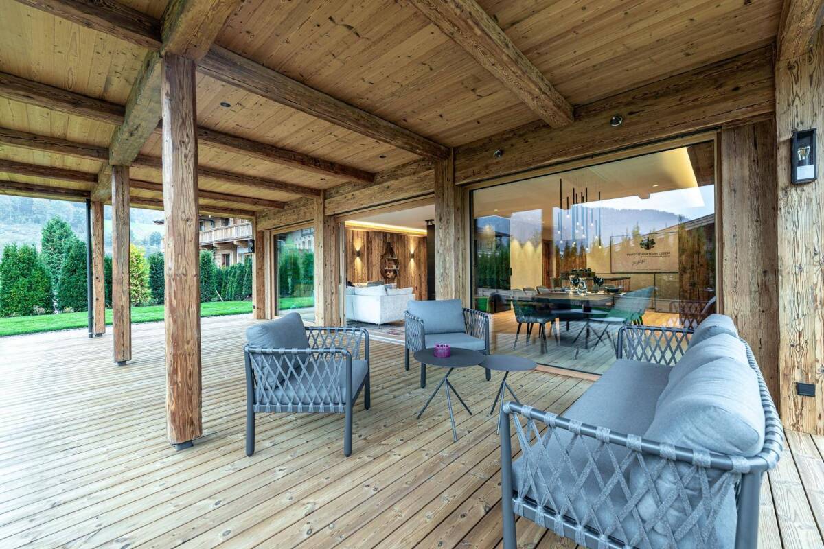 Aktuell beginnt die Umsetzung der 3. Residenz der TRINITY LODGES, welche angrenzend an die ersten beiden Landhaus-Chalets in sonniger und ruhiger Wohnlage entsteht. Angeboten wird hier „W5" – GARDEN LIVING sowie „W6“ – PENTHOUSE. Jede dieser Luxus-Wohneinheiten bietet ca. 250 m² Wohnfläche, welche sich über zwei Ebenen verteilen und mit phänomenalen Raumplanungen überzeugen. Der dafür verantwortliche Bauträger konnte sich mit seinen bis dato umgesetzten Objekten einen überaus seriösen Ruf erwerben und so erwartet Sie auch bei dieser Liegenschaft eine außergewöhnlich gute Bauqualität, ein ausgereift durchdachtes Raumkonzept sowie eine absolut exzellente Ausstattung. Es kommen allerbeste Materialien zum Einsatz, angefangen von Breitholz- und Landhausdielen in Eiche, Holz-Vollbautüren und Balken in Antikholz, sowie Einbauschränke und eine exklusive Küche in Altholz. Natursteine, Leder, Schmiedeeisen-Elemente, Designerarmaturen und Terra Stone- Spachteltechnik in den Bädern ergänzen die exzellenten Qualitätsstandards. Schon bei der Ankunft darf man sich über eine beeindruckende Optik, die die Trinity Lodges zeigen erfreuen. Das schmiedeeiserne Einfahrtstor, eine mit Piemonter Gneis gepflasterte Einfahrt sowie das, mit erlesenem Antikholz ausgeführte Garagentor und natürlich eine besonders ansprechende Fassade heißen Sie willkommen. Die Trinity Lodges lassen die Schönheit der umliegenden Naturlandschaft sowohl von den Wohnräumen, als auch von den Terrassen und Balkonen mit Freisitzen sowie vom Garten aus genießen. Wilder Kaiser, Kitzbüheler Horn und auch Hahnenkamm zeigen sich wie auf dem Präsentierteller. Die hochwertige Gartengestaltung hält herrliche Plätze zum Erholen bereit und wartet mit der Besonderheit eines offenen Outdoorkamins auf und ist von jedem der Wohnräume, als auch vom Sparbereich aus direkt zu erreichen. Die Wohnungen verfügen über drei Schlafzimmer, jedes mit einem edlen Badezimmer en suite, einen beeindruckenden und einladenden Wohn- /Essbereich mit exklusiver Küche, bodentiefen Fensterfronten und einem offenen Designer-Kaminofen. Die schicken Entrees mit Garderobe und Gäste-Waschraum und Weinkeller machen das Wohlfühlflair dieser beiden Eigenheime vollkommen. Die exklusiven Wellnessbereiche bieten eine Relax- und Fitnesszone, eine Sauna sowie eine Dusche und ein WC und führen unmittelbar auf die großflächigen Terrassen mit Freisitz, welche Ihnen Privatsphäre bieten. Die beiden Wohneinheiten sind komplett autark und gewähren Barrierefreiheit. Mit der modernen Haustechnik sind Annehmlichkeiten, wie eine automatische Beschattungsanlage, ein Lichtkonzept, ein Zentralschalter für Beleuchtung sowie Beschattung, eine Torsprechanlage mit Überwachungskamera, Satelliten-TV, die Verkabelung für eine Musikanlage und eine Freiflächenheizung gegeben. Ein Wirtschaftsraum und Lagerräume bieten reichlich Stauraum für jedes Zuhause. Die Energieversorgung der Fußbodenheizung erfolgt mit Gas. Für diese Einheiten stehen je drei Tiefgaragenplätze und zudem ein Stellplatz im Carport zur Verfügung. Fertigstellung: Sommer 2021
