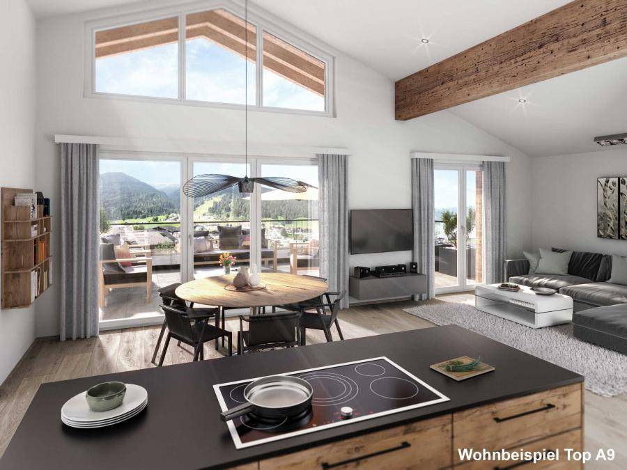 Wohnen auf hohem Niveau Die exklusive 4-Zimmer Penthouse-Wohnung mit einer traumhaften 34m² großen Panorama-Dachterrasse verspricht pures Wohnvergnügen in herrlicher Lage! Die Wohnung überzeugt durch hochwertige Ausstattung mit ausgewählten Materialien und einer idealen Raumaufteilung. Erleben Sie modernen Komfort und freuen Sie sich auf das Gefühl, endlich daheim angekommen zu sein. Wohnvergnügen im Überblick barrierefreie 4-Zimmer Penthouse-Wohnung (104m²) mit hochwertiger Ausstattung 34m² Dachterrasse mit traumhaftem Panoramablick 2 Badezimmer - das eine mit Badewanne, das andere mit bodenebener Dusche ideale Wohnlage für aktive Genießer: sonnig, zentral, naturnah qualitative & energieeffiziente Bauweise stilvoller Parkettboden, Fußbodenheizung geschmackvolle Sanitärausstattung 3-fach Isolierverglasung, bedarfsgerechte Wohnraumbelüftung Photovoltaikanlage Tiefgarage mit ebenerdiger Zufahrt Lift, Waschküche, Kinderwagenraum attraktive Außenanlage mit eigenem Spielplatz Wohnbauförderung möglich Kaufpreis Kaufpreis Wohnung A10: € 615.252,- Kaufpreis 2 Tiefgaragenstellplätze: € 53.600,- Kaufpreis gesamt: € 668.852,- Komfortable Ausstattung Alle Raumeinheiten des Projektes überzeugen nachhaltig durch eine qualitativ hochwertige Ausstattung. Für tageslichtdurchflutete Wohnräume sorgen die bodentiefen Glaselemente und schaffen eine äußerst angenehme Wohnatmosphäre. Als Bodenbelag dienen stilvoller Parkett und moderne Fliesen, die mit den unterschiedlichsten Wohnstilen harmonieren. Die geschmackvolle Sanitärausstattung macht Ihr Badezimmer zu Ihrer eigenen Wohlfühloase. An kühlen Tagen trägt die Fußbodenheizung zum Wohlbefinden bei und für einen optimalen Energiehaushalt verfügen die Fenster über eine Dreifachisolierverglasung. Dank der energieeffizienten Bauweise sowie der Photovoltaikanlage sparen Sie zuverlässig an Stromkosten. Darüber hinaus profitieren Sie von den Vorteilen einer barrierefreien Wohnung, die nicht nur im Alter zusätzlich für Komfort und Sicherheit sorgen. Währenddessen sich vor allem die Kinder über den eigenen Spielplatz in der attraktiven Außenanlage freuen. Lift, Fahrrad- und Kinderwagenraum, Waschküche sowie Tiefgarage mit ebenerdiger Zufahrt runden das durchdachte Wohnkonzept ab. Beste Wohnlage & hoher Freizeitwert Der Standort des Projekts „Living Space“ wird Sie begeistern. Die drei Gebäudekomplexe befinden sich in leichter Hanglage in einer sonnigen und zentralen Wohnsiedlung. Dabei genießen Sie einen traumhaften Blick auf die malerische Gemeinde und die umliegende Bergwelt. In der näheren Umgebung befinden sich Einkaufsmöglichkeiten, Cafés und Restaurants sowie Ärzte, Kindergarten und Volksschule. Zu jeder Jahreszeit profitieren Sie von dem hohen Freizeitwert der Gemeinde. Im Winter begeistert das weitläufige Skigebiet "Snow Space" inmitten von ski amadé mit seinen bestens präparierten Pisten für die ganze Familie. Im Sommer warten zahlreiche Rad- und Wanderwege darauf, von Ihnen erkundet zu werden. Dank der sehr guten Verkehrsanbindung erreichen Sie viele weitere Ausflugsziele und Freizeitmöglichkeiten in wenigen Fahrminuten. Gleich unverbindlich informieren! Lassen auch Sie sich von diesem attraktiven Wohnkonzept begeistern und entscheiden Sie sich für Ihre Traumwohnung von Leitgöb Wohnbau. Kontaktieren Sie uns für einen unverbindlichen Beratungstermin unter 06582 70203.