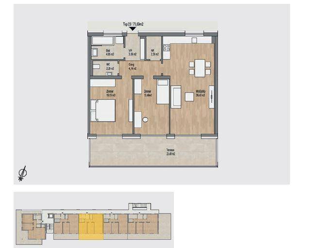 Dieses traumhafte Neubauprojekt mit insgesamt 29 barrierefreien Eigentumswohnungen wird in der beliebten Stadtlage im Bezirk Jakomini errichtet. Raumaufteilung:VorraumBadezimmer mit Badewanne, Waschmaschinenanschluss und Fensterseparates WCAbstellraumGanggroßzügiges Wohnzimmer mit Küche und Essbereich2 SchlafzimmerBalkon Der 23,5 m² große Balkon ist sowohl vom Wohnbereich als auch von beiden Schlafzimmern zugänglich und bietet sich für zahlreiche Sonnenstunden an. Dieses Neubauprojekt wurde in Massivbauweise errichtet und mit hochwertigen Materialen wie Parkett und Feinsteinzeug ausgestattet. Die hochwertigen Eigentumswohnungen erstrecken sich über 5 Geschosse, bieten Wohnflächen zwischen rund 42 und 100 m² und werden Sie aufgrund der gelungenen Aufteilung begeistern. Die Wohnbereiche werden mit großzügigen Fensterfronten versehen und verleihen den Räumlichkeiten eine angenehme Atmosphäre. Durch die Süd-/Westausrichtung werden die Wohnungen mit viel Licht verwöhnt. Angenehme Freiflächen wie Eigengärten, Terrassen oder Balkone erweitern zudem den Wohngenuss. Die Beheizung erfolgt mittels Fernwärme über eine Fußbodenheizung. Alle Wohnungen erhalten Wohnungsstationen mit Wärmemengenzähler. Bei Bedarf kann außerdem ein Tiefgaragenparkplatz erworben werden. Vorzüge:perfekte Lagehochwertige Materialensonnige Freiflächenideale Raumaufteilungbarrierefrei Kaufnebenkosten:VertragserrichtungsgebührenBarauslagenGrunderwerbssteuer: 3,5%Grundbuchsgebühr: 1,1% Vermittlungsprovision: provisionsfreiTreuhandschaft bei Fremdfinanzierung