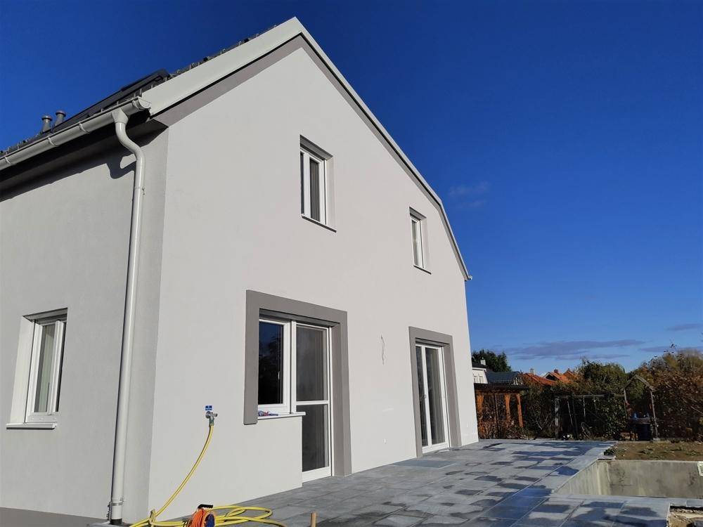 BESICHTIGUNGEN JEDERZEIT MÖGLICH! TRAUMHAUS MIT POOL WARTET AUF SIE! Das Anfang 2020 fertig gestellte Haus verfügt über eine äußerst hochwertige Ausstattung, in einer bereits bestehenden Wohnsiedlung mit Blick auf den Eichkogel - ein wunderschönes Naherholungsgebiet - gelegen. Der Windradlteich ist zu Fuß in 1 Minute zu erreichen. Sie verfügen über einen riesengroßen gepflasterten Vorplatz, z.B. für mehrere PKW - direkt beim Haus. Dahinter befindet sich gleich der etwas erhöht liegende große Garten. AUFTEILUNG ERDGESCHOSS: . geräumiger, heller Vorraum, Stiegenaufgang mit Fenster . Badezimmer mit Dusche . separates WC . riesengroßes Wohnzimmer, mit Tischler-Küche und Essbereich - Ausgänge auf die Südterrasse mit Pool RAUMAUFTEILUNG OBERGESCHOSS: . großer, heller Vorraum . hochwertig ausgestattetes Badezimmer mit tiefergelegter Wanne, leicht zum hineinsteigen, und ebenerdig begehbarer, offener Dusche, wunderschöne Fliesen . separates WC . 3 große Zimmer Das gesamte Obergeschoss wartet mit einer Klimaanlage auf, sowie das ganze Haus mit elektrischen Außenjalousien an den Fenstern. Alle Böden sind mit hochwertigen Fliesen in ansprechender, moderner Farbe und in den Wohnräumen mit einem Vinylboden ausgelegt. Dieser barfußfreundliche Bodenbelag lässt sich nicht nur leicht pflegen - er sieht hervorragend aus und widersteht perfekt den täglichen Strapazen. KELLERGESCHOSS: . großer Kellerraum mit Waschmaschinen-Anschluss und Ausgussbecken . extra hohe Kellerräume (2,70 m) mit Fenster, sehr hell - voll nutzbar - durchgehend schöne Fliesen . Technikraum . Freizeit- und Fitnessraum, Massagedusche, vorbereitet für Sauna . Fußbodenheizung Beheizt wird das Haus mit einer Luftwärmepumpe, diese bedient die Fußbodenheizung des gesamten Hauses. Zusätzlich sind jeweils im Bad separat beheizbare Handtuchtrockner vorhanden. Verbrauch pro Jahr Heizung + Warmwasser ca. € 600,- Die Anlage verfügt über eine sparsame Wasserlösung: Das komplette Regenwasser wird in einem Sammelbecken gesammelt und von dort für den Wasserbedarf zum Gartengießen und für die WC Spülungen verwendet. Es befinden sich 2 Starkstrom-Auslässe für Ladeboxen für 2 Elektroautos direkt beim Haus. Bauweise: 25 cm Ziegelmassiv mit 16 cm Wärmeschutzfassade. Der südseitig gelegene Pool ist betriebsbereit, der Garten mit hochwertigen Pflanzen, Palmen, und Sträuchern bepflanzt. Guntramsdorf ist eine aufstrebende, moderne Gemeinde im Herzen der Thermenregion, eine grüne Oase vor den Toren Wiens. Ein Ort, der in einer idyllischen, wunderschönen Landschaft zum Verweilen, Genießen und Entspannen und gleichzeitig zu zahlreichen sportlichen Aktivitäten einlädt. Die Marktgemeinde ist bekannt für ihre Heurigenkultur, ihre kulinarisch-gesellschafltichen Aktivitäten und ein vielfältiges kulturelles Angebot. Guntramsdorf ist mit seiner guten Infrastruktur und seiner günstigen Verkehrsanbindung an die A2 Richtung Wien und Wr. Neustadt und Südost-Autobahn A3 bis zum Knoten Eisenstadt auch für Wirtschaftstreibende und Jungfamilien interessant. Mit den Öffis: 2 Bahnhöfe Badner Bahn Station Guntramsdorf und Neu-Guntramsdorf, WLB Busstationen Richtung Mödling und Baden, sowie die Station der Aspang-Bahn sind vorhanden. Ein Ort, der allen Gästen und den Guntramsdorferinnen und Guntramsdorfern zugleich ein hohe Lebensqualität bietet. Sie möchten mehr wissen? Bitte vereinbaren Sie gerne einen Besichtigungstermin, wir nehmen uns viel Zeit für Sie! Wir freuen uns auf Ihren Anruf. Gerne können Sie auch zwischen den Feiertagen besichtigen! Frau Marion Clormann unter der Tel.Nr. 0650 307 00 92. Weitere Objekte mit Fotos und Beschreibungen finden Sie auch auf unserer Homepage www.agimmobilien.at