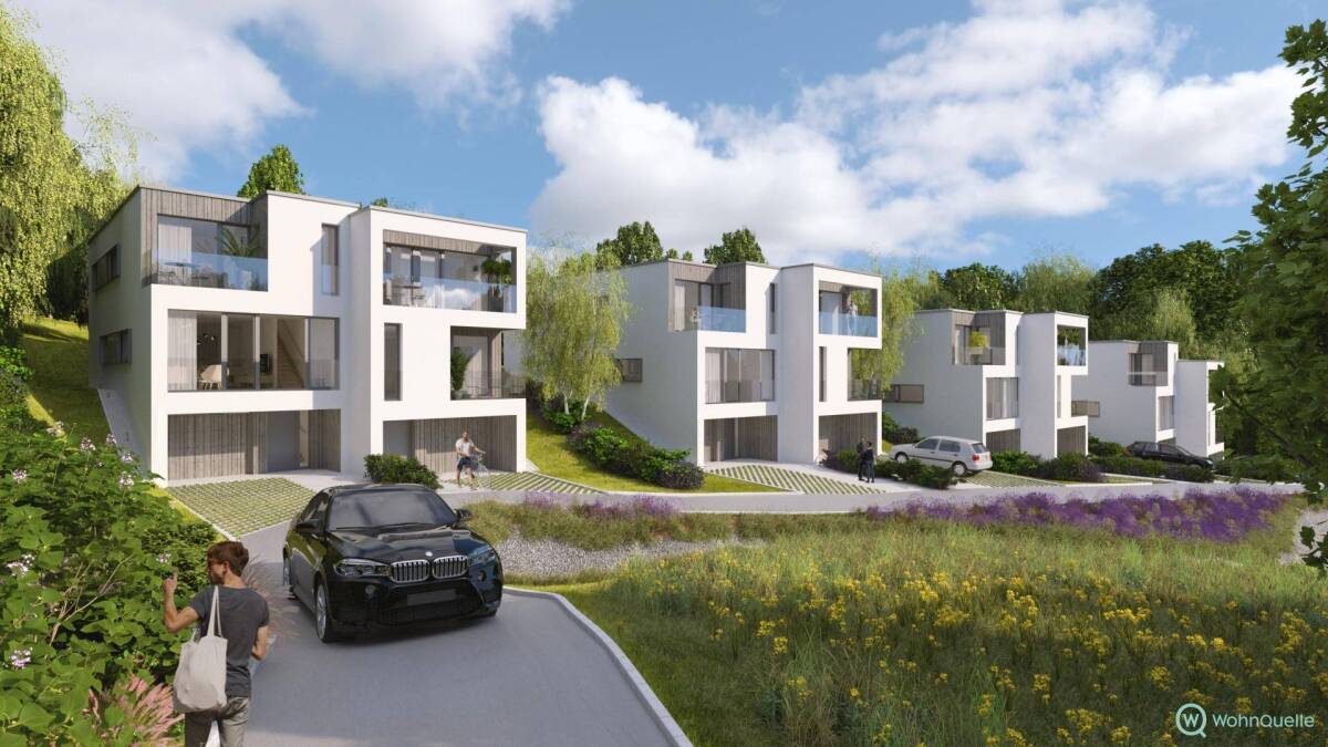 In absolut ruhiger Wohnlage am Ortsrand von Kierling entstehen unsere 8 modernen Doppelhaushälften von ca. 150 m2 bis 161 m2 Wohnfläche exklusive Balkone und Terrassen. Die Grundstücksanteile liegen zwischen ca. 550 m2 und 630 m2 pro Haushälfte.Nahe dem Ortskern gelegen schließt das Grundstück sowohl an ein von Einfamilienhäusern charakterisiertes Siedlungsgebiet als auch an das Schutzgebiet Europapark an.„Steinbrunngasse 26-30“ liegt in einer ruhigen privaten Zufahrtsstraße unweit vom Zentrum Kierling. Einkaufsmöglichkeiten, Schule, Kindergarten und Verkehrsanbindungen sind sowohl fußläufig als auch mit dem Fahrrad gut erreichbar. Das Grundstück in leichter Hanglage ist hell und sonnig und bietet einen schönen Blick in die mit seinem Wald- und Wiesengürtel umgebende Natur.Hinter dem Konzept der Häuser steht die Idee des „Durchwohnens“. Die großzügige Verglasung an den beiden Schmalseiten des Gebäudes ermöglicht die Einbeziehung des Grünraums in den Wohn- und Essbereich. Durch die Seitenwangen werden die Gebäude zu ihren Nachbargrundstücken abgeschottet und bieten somit Privatsphäre. Das natürliche Sonnenlicht tritt am Morgen von Osten ein und lässt auch zu später Stunde das Abendlicht in den Raum.Speziell im Sommer ist durch die Öffnung der Fassade an den Schmalseiten die Möglichkeit einer Querlüftung gegeben.Infrastruktur / EntfernungenGesundheit Arzt <3.250m Apotheke <750m Klinik <2.500m Krankenhaus <4.000m Kinder & Schulen Schule <750m Kindergarten <750m Universität <1.250m Höhere Schule <8.750m Nahversorgung Supermarkt <750m Bäckerei <3.500m Einkaufszentrum <8.000m Sonstige Bank <3.750m Geldautomat <3.750m Post <750m Polizei <4.000m Verkehr Bus <750m Straßenbahn <7.500m U-Bahn <9.250m Bahnhof <3.750m Autobahnanschluss <5.500m Angaben Entfernung Luftlinie / Quelle: OpenStreetMap