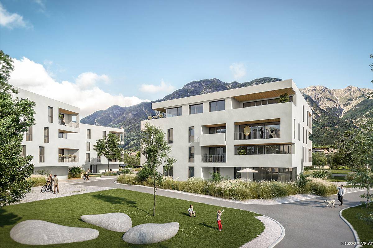 Wer die malerische Tiroler Marktgemeinde Völs als Wohnort wählt, lebt inmitten eines eindrucksvollen Landschaftsbildes. Die wunderbaren Ausblicke auf beeindruckende Bergspitzen, ruhige Wälder und umliegende Nachbarhäuser waren für die attraktive Seesiedlung daher entwurfsbestimmend. Geprägt durch die Verbindung von kinderfreundlicher Weitläufigkeit mit hochwertigsten Materialien und intelligenter Bauweise, erschließt sich auf einer Fläche von knapp 10.000 m² die besondere Qualität der neuen Nachbarschaft. Während die natürliche Eleganz der Architektur ihr leises Echo wirft, sorgt die parkähnliche Außenanlage zwischen den fünf kubischen Wohngebäuden, die auf je vier Etagen Platz für 76 moderne Wohneinheiten bieten, für sanfte Entschleunigung im Grünen. Ein eigener Fuß- und Radweg durch die Seesiedlung verbindet dabei das nachbarschaftliche Ambiente und leistet einen wesentlichen Beitrag zur sicheren Fortbewegung innerhalb des Areals. Neben den umfangreichen Grünflächen bieten die großzügigen Gärten im Erdgeschoss sowie die ausgedehnten und dennoch sichtgeschützten Balkone und Terrassen zusätzlich ausreichend Raum, um sich alleine, als Paar oder als Familie ungestört zu entfalten. Deckenhohe Glasflächen verbinden die hellen Wohnungen zudem scheinbar mühelos mit der beeindruckenden, umliegenden Berglandschaft und machen die Natur in jedem Zuhause erlebbar. Um höchsten Komfort und Barrierefreiheit für Jung und Alt zu garantieren, verfügen alle Gebäude über moderne Aufzüge, ausreichend Tiefgaragen-Stellplätze sowie Besucher-Parkplätze im Freien und persönliche Kellerabteile.