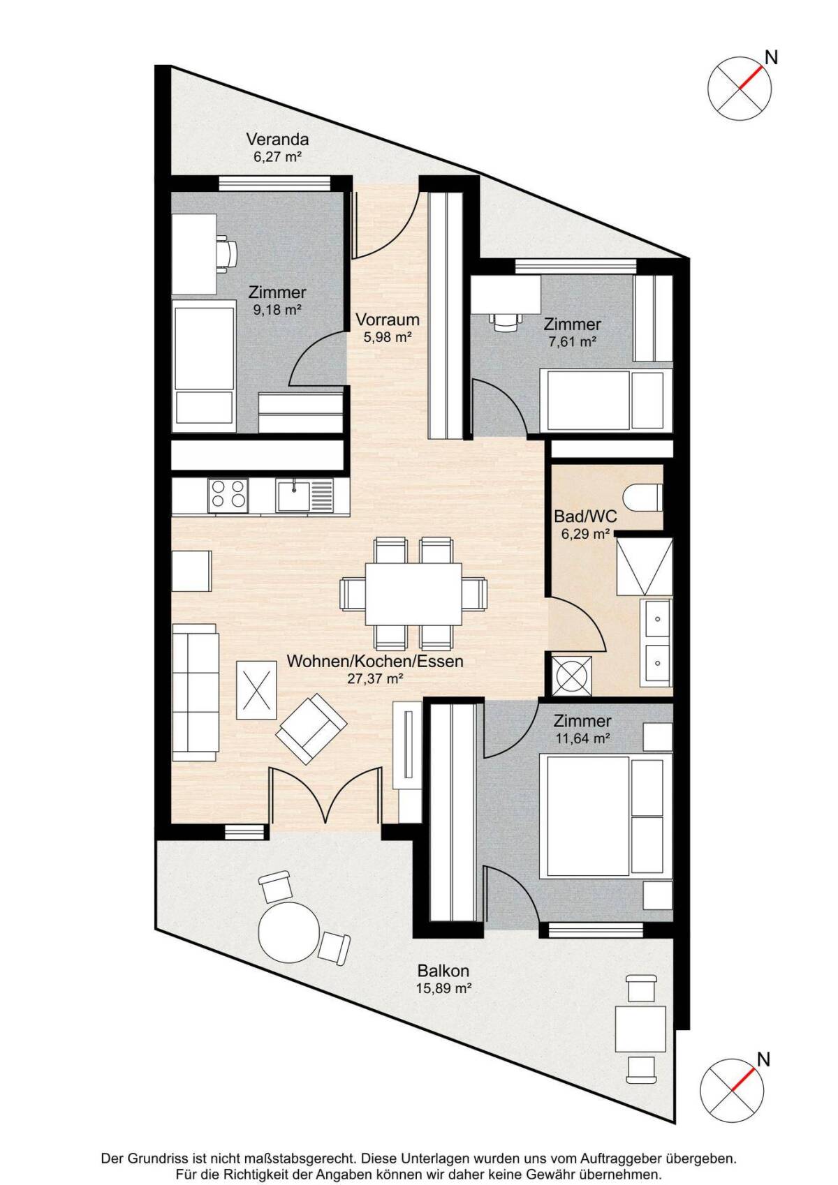Diese lichtdurchflutete Eigentumswohnung befindet sich im Südosten von Graz und ist Teil eines sehr modernen Wohnbauprojekts. Durch die sehr gute Anbindung zur Innenstadt und Autobahn ist dieses Objekt ein idealer Lebensraum für Alljene, die urban leben und auf eine ruhige, naturnahe Lage dennoch nicht verzichten möchten. Über den Vorraum erreichen Sie den offenen Wohn-/Ess-/Kochbereich, die drei Schlafzimmer und das geräumige Bad. Der große südöstlich ausgerichtete Balkon, auf den Sie vom Wohnzimmer sowie vom Hauptschlafzimmer gelangen, rundet Ihre neues Daheim ab. Zusätzlich haben Sie auch eine nach Nordwesten ausgerichtete Veranda, auf der Sie in Ruhe die Sonnenuntergänge genießen können. Ein Tiefgaragenplatz und eine Küche können zusätzlich erworben werden.