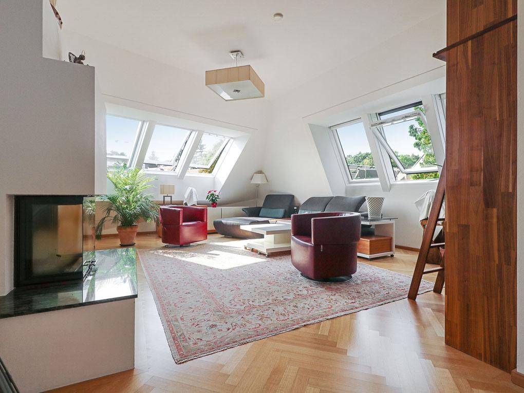An einer der besten Adressen von Ober-St.-Veit befindet sich dieses bereits von außen hochwertig anmutende moderne Haus in Top-Zustand, mit wenigen Parteien, luxuriösen Wohnungen und Süd-Ausrichtung. Mit ihren hohen Räumen, der exklusiven Ausstattung, herrlichen Freiflächen und einem Panorama-Ausblick sticht die neuwertige Dachwohnung besonders hervor. In einem lichtdurchfluteten Empfangsbereich fühlen sich die Besucher in dieser exklusiven Wohnung sofort willkommen. Dem Blick öffnet sich rechter Hand eine wundervolle Wohnlandschaft mit Kamin und linker Hand eine architektonisch gelungene Einheit aus Essbereich, Küchenbereich und offener Loggia. Die Küche mit Kochinsel ist komplett hochwertig ausgestattet. Zwei weitere Gruppen von Räumen erfüllen hohe Ansprüche an Wohnkomfort und Privatsphäre: Zum einen das schön geschnittenes Schlafzimmer mit Schrankraum und angrenzendem hellen Bad; zum anderen ein Trakt aus Flur, zwei Zimmern, einem weiteren Bad und einem hiervon getrennten WC. Aus dem Eingangsbereich führt eine eigene Treppe direkt in den fantastischen Dachgarten mit einem herrlichen Panoramablick über die begehrte Wohngegend von Ober-St.-Veit. Im Keller steht ein besonders großer Lagerraum zur Verfügung. Fahrrad- und Kinderwagenräume werden gemeinschaftlich genutzt. Zwei breite, nebeneinander liegende Parkplätze in der modernen Tiefgarage sind zu je 25.000,-- Euro zu erwerben. Die perfekte Wohnung für anspruchsvolle Paare (besonders geeignet auch für Senioren) sowie für Familien mit bis zu 2 Kindern!