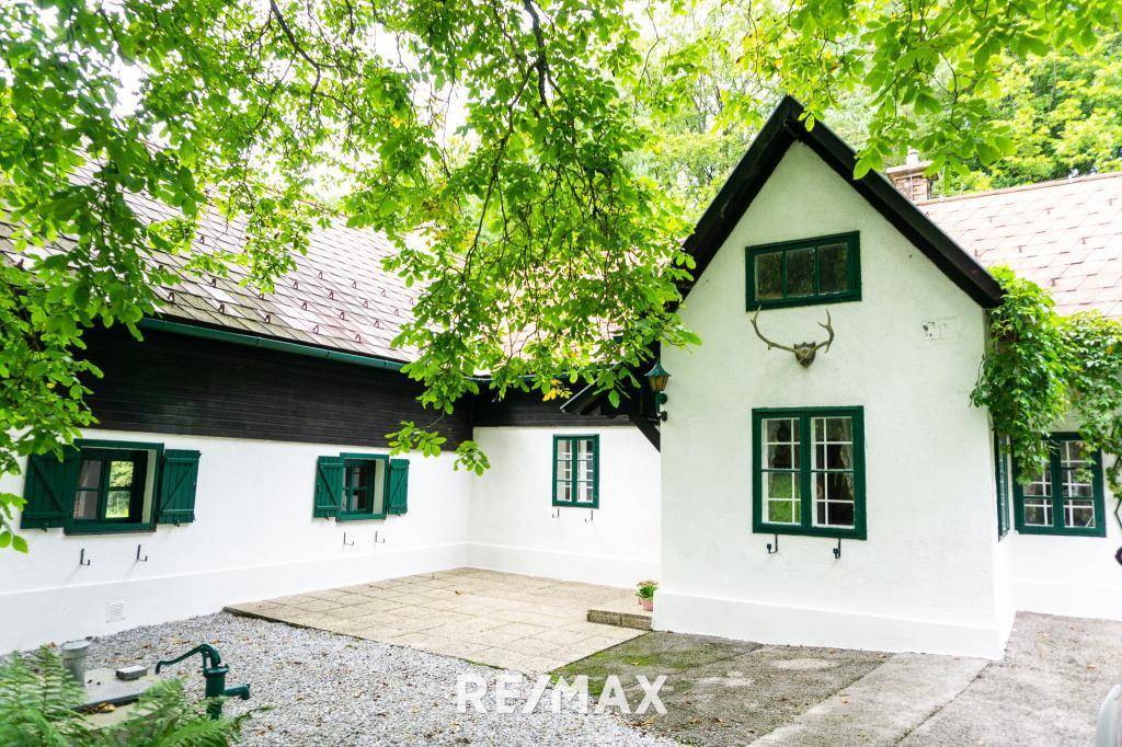 In wunderbarer, sonniger Lage im Wienerwald erstreckt sich dieses imposante Anwesen über eine Grundstücksgröße von ca. 15.600m², welches um knapp unter einer Million zu erwerben ist. Der eigene Garten auf der Klammhöhe ist wohl eine wahre Wohlfühloase, die zum Entspannen und Genießen einlädt. Durch die vollkommene Alleinlage ist das Grundstück von fremden Blicken geschützt. Fast schon majestätisch gelangen Sie durch ein grünes Tor, über eine begrünte Zufahrt, zu diesem besonderen Anwesen. Schon beim Eintreten beschleicht Sie ein Gefühl des Willkommenseins. Der 80m2 große Wohnsalon garantiert an kalten Wintertagen durch den offenen Kamin Gemütlichkeit und Romantik. Durch den Kamin optisch abgetrennt, eignet sich der Barbereich perfekt für gemütliche Abende mit oder ohne Ihren Gästen. Eine großflächige Galerie im Obergeschoss lässt nicht nur den Wohnraum offener wirken sondern auch die idyllische Kaminstimmung über zwei Etagen zum Vorschein kommen. Die Innenräume gliedern sich in fünf Zimmer auf zwei Stockwerken. Weiters punktet die Villa durch zwei Badezimmer, wobei eines mit einer gemütlichen Sauna für wohltuende Wellnesstage ausgestattet ist. Im Freien lassen sich laue Sommerabende auf Ihrer ca. 128m² großen Terrasse genießen. Gerne auch mit musikalischer Untermalung dank der Alleinlage! Zur Umgebung: Hainfeld liegt ca. 14 Fahrminuten entfernt und bietet alles nötige für den täglichen Bedarf: • Einkaufsmöglichkeiten • Bahnhof • Ärzte • Apotheke • Bildungseinrichtungen • Restaurants • StadtkinoAngaben gemäß gesetzlichem Erfordernis: Heizwärmebedarf: 211.0 kWh/(m²a) Klasse Heizwärmebedarf: F Faktor Gesamtenergieeffizienz: 2.24 Klasse Faktor Gesamtenergieeffizienz: D