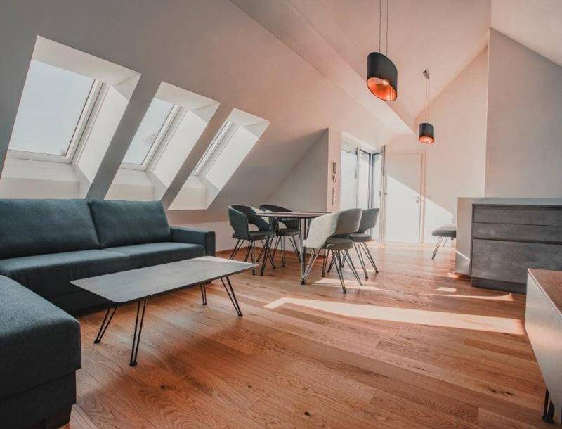 Erstbezug: traumhafte 3-Zimmer Maisonette-Wohnung mit 92 m² Wohnfläche, 16 m² Balkon und 12 m² Sonnenterrasse im 2. OG mit Lift; 2 Tiefgaragenplätze. Attraktive Lage in Schallmoos mit bester Infrastruktur: Gleich ums Eck erwartet Sie eine Vielzahl an Shoppingangeboten und gemütlichen Gaststätten, zum Bahnhof und in die Linzer Gasse ist es nur ein Katzensprung, der Kapuzinerberg mit Möglichkeiten für Sport und Entspannung liegt vor der Haustür. Sonnendurchflutet und mit viel Raum für die Verwirklichung Ihrer individuellen Wohnträume präsentiert sich diese Wohnoase. In der ersten Ebene finden Sie Ruhe und Rückzug in zwei Schlafzimmern, beide mit Zugang auf den Balkon. Das schicke Bad ist mit Wanne und Waschtisch ausgestattet; WC extra. Im Mittelpunkt der oberen Ebene ist der einladende Wohn-/Essbereich mit Zugang auf die Sonnenterrasse. Die stilvoll integrierte Küche begeistert mit modernsten Elektrogeräten. Außerdem ein Gäste-WC. Hochwertige Eichenparkettböden, Fußbodenheizung, Kabel-TV, modernes Bad-Interieur, WM-Anschluss, allgemeiner Wasch- und Trockenraum, Kellerraum, teilweise Jalousien. Betriebskosten: EUR 270, HWB 29, fGEE 0,63