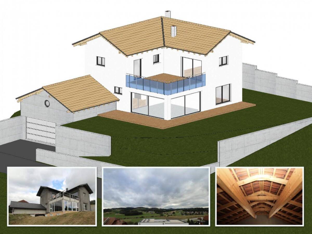 Dieser hochwertig gebaute und nach Südwesten ausgerichtete Rohbau möchte fertiggestellt werden.Das Grundstück weist eine Fläche von 800m² auf und ist von Stützmauern eingefriedet.Der Keller mit 113m² beinhaltet eine Doppelgarage, einen Raum für die Haustechnik und 5 weitere Räume für Lagerung, Werkstatt, Hobbies, etc.Das Erdgeschoß bietet mit großzügigen 105m² Platz für Wohnzimmer, Esszimmer, Küche, Arbeitsraum, Abstellraum und einen Wintergarten mit südwestlicher Ausrichtung.Im Obergeschoß befinden sich auf 75m² das Schlafzimmer, zwei Kinderzimmer und ein Bad. Zudem ist von zwei Zimmern aus die 32m² große Dachterrasse begehbar, von welcher ein herrlicher, beinahe 180 Grad Ausblick in die Natur des wunderschönen Mühlviertel möglich ist.Die Außenmauern sind in 50 cm Leca Blähton gefertigt, der für ein besonderes Raumklima sorgt, was bereits im Rohbau spürbar ist. Eine zusätzliche Wärmedämmung ist nicht mehr nötig.Dreifach verglaste und großflächige Fenster und Glastüren isolieren zusätzlich und sorgen für helle Wohnräume.Das Dach ist mit grauem Tonziegel eingedeckt.Es sind bereits alle Vorbereitungen wie Aussparungen und Leerverrohrungen für die elektro-, heizungs- und wassertechnische Fertigstellung getroffen.Ein Pufferspeicher mit 2000 Liter Fassungsvermögen sowie 2 Kamine sind ebenfalls bereits vorhanden.Nützen Sie die Chance, diesen hochwertigen Rohbau zu besichtigen, sich in die Architektur zu verlieben und Ihren zukünftigen Wohnraum zu schaffen - es lohnt sich!Infrastruktur / EntfernungenGesundheit Arzt <1.000m Apotheke <7.000m Klinik <7.500m Krankenhaus <7.500m Kinder & Schulen Schule <1.000m Kindergarten <1.000m Höhere Schule <8.000m Universität <8.000m Nahversorgung Supermarkt <1.000m Bäckerei <4.500m Einkaufszentrum <7.000m Sonstige Geldautomat <1.000m Bank <1.000m Post <1.000m Polizei <1.000m Verkehr Bus <1.000m Autobahnanschluss <4.000m Bahnhof <500m Angaben Entfernung Luftlinie / Quelle: OpenStreetMap