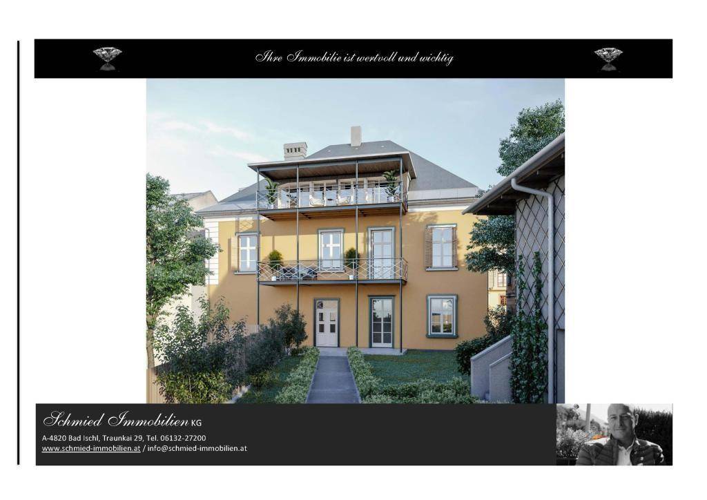 Ein Kleinod, mitten im Herzen der Kaiserstadt Bad Ischl Die historische Villa wurde, in Zusammenarbeit mit dem Bundesdenkmalamt komplett saniert und auf einen modernen und exklusiven Stand gebracht. Das Projekt beinhaltet 3 Eigentumswohnungen im historischen Gebäude, 1 Eigentumswohnung als Neubau, sowie 4 Carports und Abstellräume. Die Eigentumswohnungen lassen keine Wünsche offen und es wird Bedacht genommen auf historische Originalität und moderne Wohnkultur. • Premium Lage • Hohe Räume, • Terrasse, Balkone, • Hochwertige Materialien in der Ausstattung, • Kleinere Gartenwohnung im Erdgeschoss, • uvm. Die angebotene Wohnung befindet sich im Erdgeschoss der historischen Villa. Sie verfügt über einen großen, offenen Wohn-/Essraum mit Ausgang auf die Terrasse und Eigengarten. Weiters stehen ein Vorraum, WC, Schlafzimmer und Badezimmer mit Dusche zur Verfügung. Die Wohnung ist Barrierefrei. Die Lage unmittelbar neben der berühmten Lehar-Villa ist einmalig und bietet Ihnen sämtliche Infrastruktur, praktisch vor Ihrer Haustüre. Nähere Informationen und Unterlagen erhalten Sie bei uns im BüroAngaben gemäß gesetzlichem Erfordernis: Heizwärmebedarf: 61.0 kWh/(m²a) Faktor Gesamtenergieeffizienz: 0.71