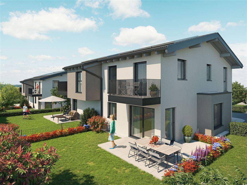 Ihr neues Zuhause in Lamprechtshausen-Realeigentum! Fünf Doppelhaushälften mit Wohnflächen von ca. 110 m² und 116 m², zuzüglich Vollkeller, Carport und PKW-Freiplatz. Grundstücksgrößen ca. 225 m² bis 297 m² Fertigstellung Herbst 2022! "Doppelhaus J" • 110 m² Wohnfläche • 253 m² Grundstück • 110 m² Garten mit 17m² Terrasse • 4 m² Balkon • 53 m² Keller * Ein Carport und ein PKW-Freiplatz inklusive