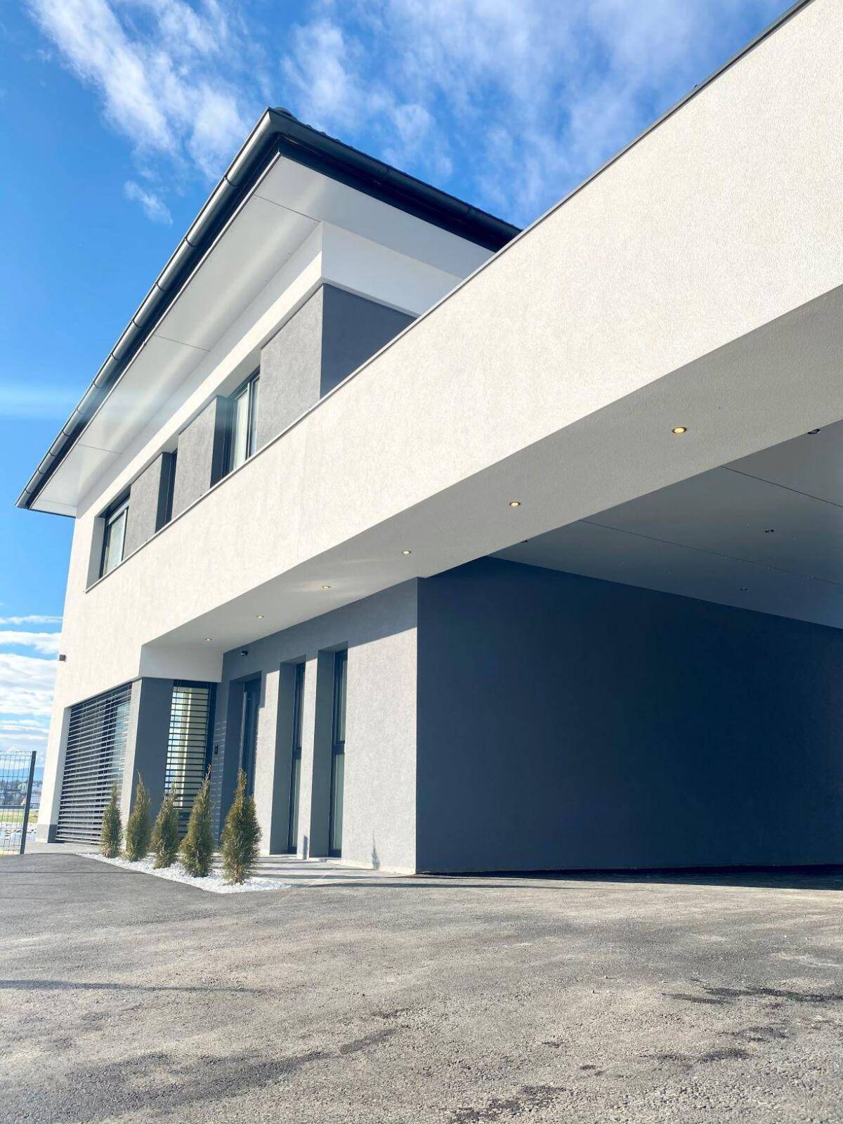 Durch das perfekte Zusammenspiel aus moderner Architektur und hochwertigen Materialien begeistern diese zwei Einfamilienhäuser. Diese werden gerade in einer ruhigen Lage in Unterpremstätten gebaut. Das Projekt besteht aus zwei gleichen Einfamilienhäusern, die mit einem hochwertigen Carport verbunden sind. Schon auf den ersten Blick wird klar, dass bei diesem Haus auf jede Kleinigkeit geachtet wurde, so dass man sich einfach wohlfühlt. Wer auf der Suche nach einem erstklassigen Haus im Grünen, welches aber trotzdem nahe an der Stadt ist, wird sich auf den ersten Blick verlieben. Im Erdgeschoss empfängt Sie ein schöner Vorraum, der in ein Schlafzimmer, das Gäste Bad und einen offenen Wohn-/Essbereich führt. Eine große Terrasse mit dazugehörigem Garten, welcher sowohl aus der Küche als auch aus dem Wohnbereich begehbar ist, macht diesen Wohntraum zu einer Wohlfühloase. Im Erdgeschoss befindet sich ein Abstellraum sowie ein Technikraum außerhalb des Hauses. Im Obergeschoss gelangt man in den zweiten, geräumigen Vorraum von dem aus man in drei weitere, große Schlafzimmer gelangt, wobei ein Schlafzimmer mit begehbarem Schrank ausgestattet ist. Das ca. 10 m² große Badezimmer ist mit einer Dusche, Badewanne und Doppelwaschbecken eingerichtet. Nicht nur das Badezimmer, sondern auch das getrennte WC verfügt über ein Fenster. Das moderne und sehr gut geplante Raumkonzept sowie der Stil der Häuser, wird durch die schlanken, modernen Fenster unterstützt, welche für viel Licht im Haus sorgen. Das großzügige Doppelcarport überdacht die Fläche bis zur Eingangstür.