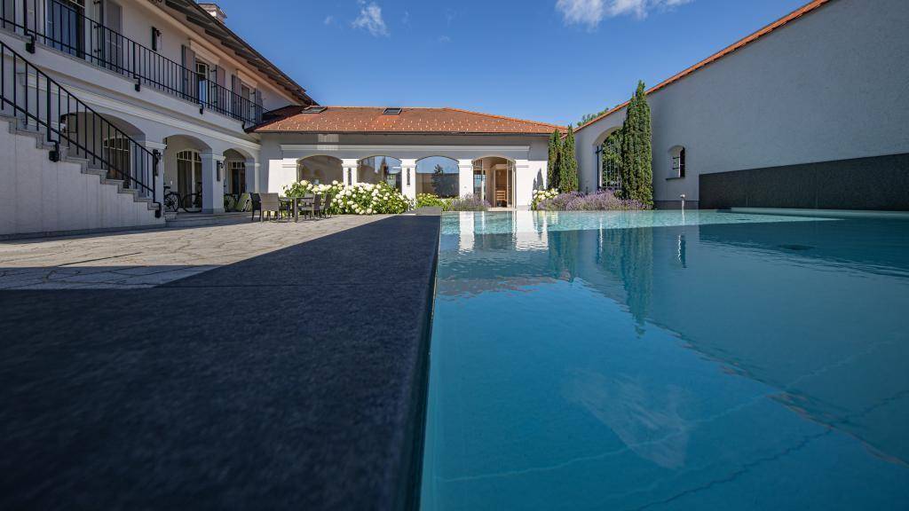 Außergewöhnliches Anwesen am Rande von Linz! Diese repräsentative Villa in Linz-Leonding bietet ca. 500m2 Wohn-Nutz-Fläche auf über 6.000m2 Grundfläche. Ohne direkt angrenzende Nachbarhäuser wird trotz der zentralen Lage eine uneingeschränkte Privatsphäre geboten. Die erhöhte Lage eröffnet den künftigen Bewohnern eine ungestörte Aussicht bis hinein in das beeindruckende Alpenpanorama am Horizont. Dabei ist das Zentrum der Landeshauptstadt Linz ebenso wie die A1 in nur ca. 10 Minuten erreichbar. Der nahegelegene Flughafen Linz schließt den Standort an internationale Destinationen an. Damit ist die Villa bestens geeignet für erfolgreiches Business- und entspanntes Familienleben unter einem Dach. Die Villa wurde vor 2012 anstelle eines ehemaligen Gutshofes zur Gänze neu errichtet. Repräsentatives Erdgeschoss Durch das Eingangsportal kommt man in den großzügigen Vorraum mit WC und zwei seitlich gelegenen, abgetrennten Garderoben-Bereichen. Die zweiflügelige Glas-Schiebetür führt ins Wohnzimmer, das auf rund 50 m2 mit moderner, offener Architektur begeistert. Glaselemente und -türen machen den Nebenraum einsichtig - hier befinden sich auf rund 63 m2 eine moderne Designerküche und ein weitläufiger Essbereich. Eine zweite Gebrauchsküche ist separat eingerichtet. Eine gemütliche Einliegerwohnung mit eigenem Gartenzugang ist ebenso vorhanden wie ein großzügiger Saunabereich, ein Gästeschlafzimmer sowie ein weiteres Bad. Das Erdgeschoß beeindruckt mit handgeformten Terrakotta-Fliesen und exklusiven Ausstattungsdetails. Weitläufiges Obergeschoss Über die elegante Stiege kommt man ins Obergeschoss, dessen Böden vollständig mit hochwertiger Landhausdiele in Eiche ausgeführt sind. Hier finden sich zwei Arbeitszimmer/Büros, ein geräumiges, separates Ankleidezimmer sowie drei Schlafzimmer mit eigenen Bädern und Schrankräumen und diversen Nebenräumen. Uneinsichtiger Innenhof, weitläufiger Park Parties mit Freunden, Besprechungen mit Geschäftspartnern oder angenehme Stunden am Pool (mit Außendusche) - der uneinsichtige Innenhof bietet Privatheit. Vor zwei breiten Toren erstreckt sich der parkähnliche Garten mit liebevoll angelegten Baum- und Strauchlandschaften, antiken Statuen-Ensembles und jeder Menge Platz. Außenbereich Eine charmante Kapelle ziert die Hauseinfahrt, neben Freiplätzen bieten eine Garage und ein Carport Parkflächen. Das gesamte Grundstück ist von blickdichten Hecken umgeben. Facility • Alarmanlagen im gesamten Haus • Video Überwachung vom gesamten Grundstück - Gasheizung als redundantes System • Fußbodenheizung (ausgenommen in den Schlafzimmer) • Plus zusätzlichen Heizungsradiatoren • Solarheizung für den Pool • Pooltechnik mit automatischer Regelung • Wasserenteisungsanlage • Wasserenthärtungsanlage • Hauseigener Brunnen • Bewässerungsanlage • 2x Rasenroboter Haben wir Ihr Interesse geweckt? Sehr gerne schicken wir Ihnen auf Anfrage ein ausführliches Exposé zu und freuen uns Ihnen diese außergewöhnliche Immobilie zu präsentieren. Alle Angaben basieren auf Informationen des Eigentümers. Für Richtigkeit, Aktualität und Vollständigkeit übernimmt die P.I.C Real Estate GmbH keine Gewähr .Angaben gemäß gesetzlichem Erfordernis: Heizwärmebedarf: 47.9 kWh/(m²a) Klasse Heizwärmebedarf: B