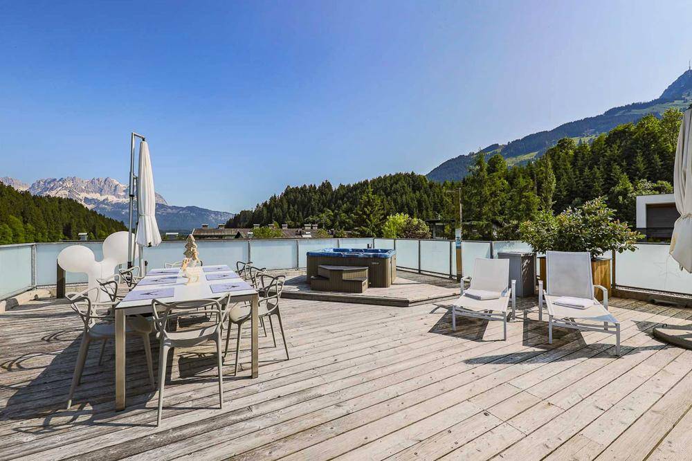 Kitzbühel - Vordergrub Der 360-Grad-Panoramablick geht vom Hahnenkamm, über den gesamten Wilden Kaiser, das Kitzbüheler Horn hin bis zu den Südbergen. Unübertrefflich ist die ganztägige Sonneneinstrahlung, welche durch nichts beeinträchtigt wird. Das unverbaubare Bergpanorama unterstreicht die Einzigartigkeit dieser Immobilie. Auf einer Wohnfläche von ca. 162 m² befindet sich ein etwa 88 m² großer Wohnsalon mit Kamin und Glasfronten nach 3 Seiten, eine offene Bulthaup-Küche sowie der offene Essbereich. Die nahezu Rundumverglasung, macht das Wohnen in diesem Penthouse zu einem einmaligen Erlebnis.2 Schlafräume und ein großzügiges Bad, runden das Raumangebot auf dieser Ebene ab. Die ca. 200 m² große Dachterrasse ist uneinsehbar und bietet mit Freisitz und Jacuzzi Lebensfreude pur. Darüber hinaus befindet sich im Untergeschoss ein ca. 109 m² Wellnessbereich mit Sauna, Dampfbad, Dusche, WC. Auf dieser Ebene gibt es ebenso einen Wirtschaftsraum und eine Ankleide. Der untere Bereich ist separat begehbar und bietet die Möglichkeit eines abgeschlossenen Appartements. Das Luxuspenthouse wurde erst 2019 äußerst aufwendig auf den letzten Stand der Technik gebracht und außerdem sehr stilvoll möbliert. Die exklusive Designerküche ist mit hochwertigen Geräten der Marken Miele und Gagenau versehen. Selbstverständlich sind Außenjalousien, Sonnensegel, Grillplatz, Freisitz mit Kamin und viele weitere Highlights vorhanden. Die Luxus-Wohnung ist von der Tiefgarage (2 Stellplätze) direkt über den Lift erreichbar. Für weitere Fragen bzw. zur Vereinbarung von Besichtigungsterminen stehen wir Ihnen unter der Telefonnummer +43 5356 20247 zur Verfügung. Nebenkosten bis zu 10 % abhängig vom Kaufpreis, von der Vertragserrichtung, der grundbücherlichen Sicherstellung des Kaufpreises und dem Verwandtschaftsverhältnis.
