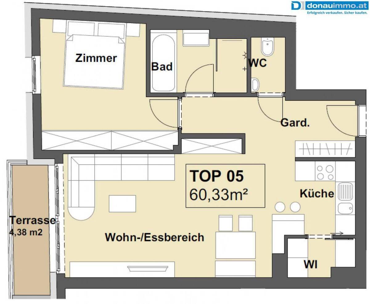 Die Wohnung befindet sich im 2. Liftstock. Vom geräumigen Vorraum dieser perfekt und großzügig geschnittenen Wohnung sind alle Zimmer zentral zu begehen. Die Küche ist mit einer L-förmigen FM Küchenzeile und Markengeräten ausgestattet, die anschließende Speis/Abstellraum bietet organisierten Stauraum für Vorräte und sonstige Utensilien sowie den WM- Anschluß. Das Badezimmer ist zeitlos modern verfliest und verfügt über eine Badewanne, eine bodengleiche Dusche mit Duschwand sowie einen Keramik- Waschtisch mit Spiegelschrank. Das WC ist vom Vorraum aus separat begehbar. Im geräumigen Wohn- Eßbereich bietet eine große Terrassentür mehr Freiraumgefühl oder lädt zum Verweilen auf dem Balkon ein. Die Fenster sind mit elektrisch betätigbaren Außenjalousien ausgestattet, die Fernwärme- Heizung ist ohne Heizkörper als Fußbodenheizung ausgeführt. Im 1.OG ist noch ein der Wohnung zugeordneter Einlagerungsraum vorhanden, ein Fahrradabstellraum ist im EG Eingangsbereich.. Die Betriebskosten, Heizung und Warmwasser sind in der monatlichen Gesamtbelastung enthalten, der Strom ist vom Mieter direkt mit dem Energieanbieter zu verrechnen.Für den Autostellplatz in der ebenerdigen hauseigenen Garage werden monatlich € 86,00 inkl. Betriebskosten und USt. verrechnet.Diese Wohnung ist interessant für sie? Gerne erwarte ich Ihre Nachricht zur Vereinbarung eines Besichtigungstermines. Ing. Ernst Bruckner mobile 0664 8129280 e.bruckner@donauimmo.at www.donauimmo.at Objekt Nr. 50521 Ihre Sicherheit ist uns wichtig! Auch während des 2.Lockdowns sind Besichtigungen vor Ort möglich - selbstverständlich mit entsprechendem Abstand und unter Einhaltung aller, erforderlichen Hygienevorschriften! Wir freuen uns somit jederzeit auf Ihre Anfrage zur Vereinbarung eines gemeinsamen Besichtigungstermines.Sie haben auch eine Wohnung / ein Haus / eine Gewerbeimmobilie zu vermieten oder zu verkaufen? Bitte kontaktieren Sie mich um ein unverbindliches Beratungsgespräch zu vereinbaren!Infrastruktur / EntfernungenGesundheit Arzt <500m Apotheke <500m Klinik <1.000m Krankenhaus <1.000m Kinder & Schulen Schule <500m Kindergarten <1.000m Universität <1.000m Höhere Schule <1.000m Nahversorgung Supermarkt <500m Bäckerei <500m Einkaufszentrum <1.500m Sonstige Geldautomat <500m Bank <500m Post <1.000m Polizei <1.000m Verkehr Bus <500m Autobahnanschluss <1.500m Bahnhof <500m Flughafen <4.500m Angaben Entfernung Luftlinie / Quelle: OpenStreetMap