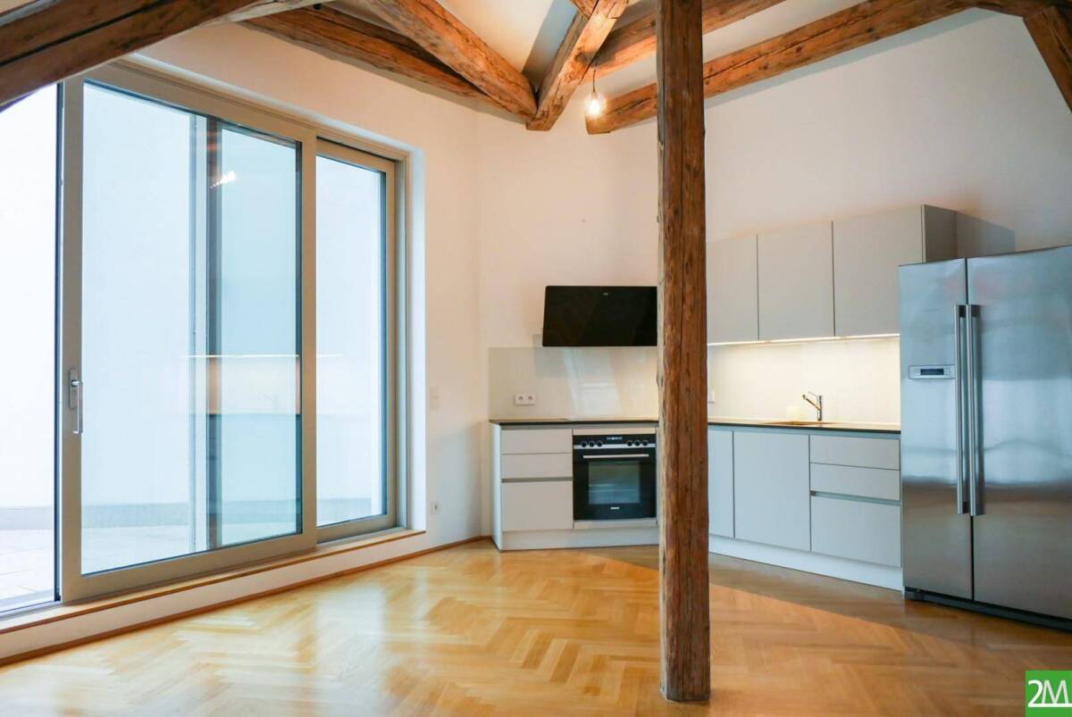 In zentraler Lage des 1. Bezirks am Franziskanerplatz gelangt diese moderne 2-Zimmer-Dachgeschoßwohnung mit großer Terrasse und einer Wohnfläche von ca. 60m² zur Vermietung. Die Wohnung liegt im neu ausgebauten Dachgeschoß eines gepflegten Gründerzeithauses und wird auf 5 Jahre befristet vermietet.Die Highlights der Wohnung:geräumiges Wohnzimmer mit moderner Küche und Ausgang zur TerrasseSchlafzimmer mit angrenzendem Bad mit Dusche, Handtuchtrockner und Handwaschbeckenseparates WC mit Handwaschbecken und Anschluss für die Waschmaschinesehr ruhige Lage dank hofseitiger Ausrichtung aller Räumehochwertige Ausstattung und Materialien (u.a. Parkettboden, großformatige Fliesen, Klimaanlage)KellerabteilDie Wohnung liegt zwischen Stephansplatz und Stadtpark. Sie haben alle wichtigen Geschäfte des täglichen Bedarfs sowie zahlreiche Lokale und Bars in Gehreichweite. Die U-Bahn-Station Stephansplatz mit den Linien U1 und U3 liegt fußläufig nur wenige Minuten entfernt. Auch mit dem Auto sind Sie durch die Nähe zum Ring gut angebunden.Für weitere Auskünfte sowie eine Besichtigung stehe ich Ihnen jederzeit gerne zur Verfügung.Mathias Mesaric, BA MA 2M Immobilien e.U. Mobil: 0650 80 22 435 Mail: mm@2m-immobilien.atwww.2m-immobilien.atHinweis:Dieses Objekt wird Ihnen unverbindlich und freibleibend zur Miete angeboten. Oben angeführte Angaben basieren auf Informationen und Unterlagen des Eigentümers und sind unsererseits ohne Gewähr. Im Falle eines Abschlusses mit Ihnen oder einem von Ihnen namhaft gemachten Dritten bzw. bei beidseitiger Willensübereinstimmung beträgt unser Honorar (lt. Honorarverordnung für Immobilienmakler) 2 Bruttomonatsmieten zuzüglich der gesetzlichen Umsatzsteuer.Kraft bestehenden Geschäftsgebrauchs weisen wir darauf hin, dass ein wirtschaftliches Naheverhältnis zum Vermieter besteht. Das wirtschaftliche Naheverhältnis ergibt sich aus der regelmäßigen Verbindung.Infrastruktur / EntfernungenGesundheit Arzt <250m Apotheke <250m Krankenhaus <1.000m Klinik <750m Kinder & Schulen Schule <250m Kindergarten <750m Universität <250m Höhere Schule <1.500m Nahversorgung Supermarkt <250m Bäckerei <250m Einkaufszentrum <500m Sonstige Bank <250m Geldautomat <250m Post <500m Polizei <500m Verkehr Bus <500m Straßenbahn <500m U-Bahn <250m Bahnhof <250m Autobahnanschluss <3.250m Angaben Entfernung Luftlinie / Quelle: OpenStreetMap