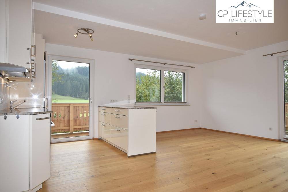 Diese traumhafte ca. 80 m² umfassende Penthouse-Wohnung liegt in angenehmer Ruhelage am Ortsrand von Kirchdorf in Tirol. Die Zentren der Gemeinden Kirchdorf und St. Johann können jeweils in wenigen Fahrminuten erreicht werden. Eine Bushaltestelle, sowie der Bahnhof liegen in angenehmer Nähe. Nahversorger sind sowohl in Kirchdorf als auch in St. Johann rasch erreichbar. Die sonnendurchflutete Wohnung erreicht man entweder über einen Personenaufzug oder über eine Außentreppe. Vom Eingangsbereich aus erreicht man sämtliche Zimmer der toll geschnittenen Wohnung. Der großzügige Wohnessbereich mit Küche und einer angrenzenden Speis (mit Waschmaschinenanschluss) stellt das Highlight der Wohnung dar. Von hier aus hat man ebenso Zugang auf einen großzügigen Balkon, der sowohl ost- als auch westseitig ausgerichtet ist. Desweiteren umfasst die Wohnung zwei charmante Schlafzimmer (eines davon mit Ostbalkon), ein Badezimmer mit Dusche und Wanne sowie ein weiteres separates WC. Die Wohnung ist mit elektrischen Raffstores ausgestattet, die in den Zimmern geschaltet werden können. Ein großzügiges Kellerabteil sowie ein Freistellplatz runden dieses tolle Mietangebot ab. Ein zusätzlicher Stellplatz kann bei Bedarf angemietet werden.