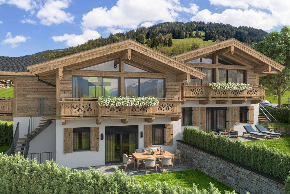 In idyllischer Lage von Aschau, direkt am Skilift, entstehen 2 Chalets mit jeweils 4 Schlafzimmern im charmanten Tiroler Stil. Bei der Ausstattung und den Materialien wird höchstes Augenmerkt auf qualitativ Hochwertiges gelegt. Die beiden Häuser verteilen sich auf 3 Ebenen mit jeweils ca. 245 m². Im Untergeschoss befindet sich der Technik- und Hauswirtschaftsraum mit ausreichend Stauraum. Auf dieser Ebene befindet sich auch ein Schlafzimmer, welches auf Wunsch auch in einen Weinkeller umgewandelt werden kann sowie der großzügige Wellnessbereich. Im Erdgeschoss befindet sich das Haupt-Entrée des Hauses sowie 3 Schlafzimmer mit Badezimmer en suite. Der lichtdurchflutete Wohn-/Essbereich erstreckt sich über das gesamte Obergeschoss und lädt mit dem offenen Kamin und einem Panoramablick zum Verweilen ein. Die Balkonflächen und der direkte Zugang in den Garten runden diesen Wohntraum ab. Vorbehaltlich Baubescheid und Parifizierung. Alle Angaben gemäß Eigentümer. HWB 41,5 /fGEE 0,80