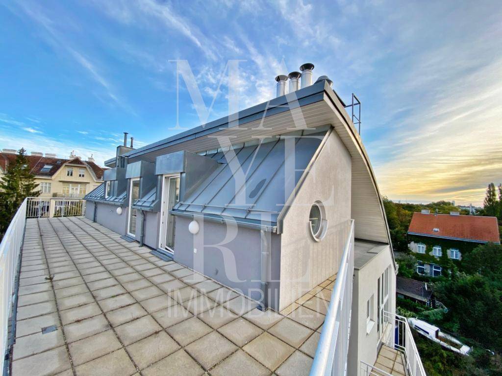 Dachterrassenwohnung in einem Dreifamilienhaus - ERSTEBZUG NACH RENOVERIUNG - zentrales Gersthof RAUMAUFTEIUNG 1. Dachgeschoss: Vorraum, Wohn-Esszimmer mit offenem Kamin und Ausgang auf Terrasse und Balkon, Küche mit Speis, Gäste-Toilette mit Handwaschbecken, 2 Schlafzimmer (1 Schlafzimmer mit Ausgang auf Terrasse, 1 Schlafzimmer mit begehbarer Garderobe und Ausgang auf Balkon), Badezimmer mit Wanne und Toilette, Abstellraum 2. Dachgeschoß: 2 große Schlafzimmer mit Ausgang auf große westseitige Terrasse, 1 Duschbadezimmer mit Toilette, 1 Badezimmer mit Wanne AUSSTTATTUNG: Parkettböden, neue geflieste Bäder, offener Kamin, schöner Blick, Klimaanlage, Kellerabteil, Hauszentralheizung, Lift, Fahrrad KIWA Raum + zahlreiche Garagenplätze á 25.000,-- LAGE - GUTE ANBINDUNG INS ZENTRUM Grünruhelage trotz Einkaufsmöglichkeiten in unmittelbarer Nähe Schulen und Kindergärten in Gehdistanz Straßenbahn 41 in 5 Gehminuten erreichbar (20 Minuten ohne Umsteigen zum Schottentor) **----------** Rooftop-Apartment in a three-family house - FIRST LETTING AFTER RENOVATION - Gersthof LAYOUT LAYOUT 1st attic floor: hall, living-dining room with open fireplace and exit to the terrace and balcony, kitchen with dining area, guest toilet with hand basin, 2 bedrooms (1 bedroom with exit to the terrace, 1 bedroom with walk-in wardrobe and exit to the balcony), bathroom with tub and toilet, storage room 2nd attic floor: 2 large bedrooms with access to a the wide rooftop terrace on the west side, 1 shower room with toilet, 1 bathroom with tub EQUIPMENT: Parquet floors, new tiled bathrooms, open fireplace, air conditioning, cellar compartment, central heating, elevator, bicycle room + Numerous garage spaces á 25.000,-- LOCATION - GOOD CONNECTION TO THE CENTER Green quiet location shops in the immediate vicinity Schools and kindergartens within walking distance Tram 41 in 5 minutes walking distance (20 minutes without changing to the Schottentor)
