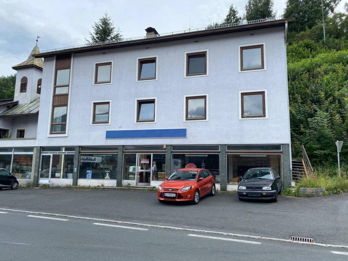 Das dreigeschossige Wohngebäude ist im EG durch Zwischentrakt mit dem Geschäftsgebäude verbunden. Verbrauch ist getrennt ablesbar zu Objekt Hauptstraße 79, obwohl die Heizungsanlage des Objekts auch die Nr. 79 mitversorgt. Teilweise unterkellert. Keine Isolierung bzw. Wärmedämmung vorhanden.IM EG befinden sich Geschäftsraum und Nebenräumlichkeiten. Die OGs sind (auch) über eine Außenstiege zugänglich, dort befinden sich 3 Wohneinheiten, eine ehemalige Werkstatt und Nasszellen lassen sich ebenso als Wohneinheit ausbauen. Das DG ist ausbaubar.Badausstattung und WC entsprechen nicht mehr dem heutigen Standard.Raumhöhen: EG 3,05, 1. OG 2,78, 2. OG 2,70m.Das Grundstück ist lt. Bewertungsgutachten als Bauland-Dorfgebiet ausgewiesen. Die umliegenden Parzellen sind mit Ein- und Mehrfamilienwohnhäusern sowie Gewerbeobjekten bebaut.Die Liegenschaft liegt nicht in gelber und roter Zone.Topografie: Grundstück ist rechteckig. Das Gelände des Objekts ist eben, im rückwärtigen Bereich mit Stützmauern abgesichert. Nach Süden steigt das Grundstück steil an.Infrastruktur: Kindergarten, Volksschule und tägliche Infrastruktur fußläufig erreichbar. Autobahnauffahrt A10 ist nur ca. 5 Minuten entfernt. Thermen und Kärntner Seen 15-40 Minuten Fahrzeit, Salzburg und Obere Adria in ca. 1,5 Stunden erreichbar. Öffentliche Verkehrsmittel vorhanden, Bushaltestelle in unmittelbarer Nähe, Bahnstation ca. 3 km.Freizeit Sommer: Wanderwege, Radwege, Schwimmbad, Tennisplatz, ModellflugplatzFreizeit Winter: Langlaufloipen, Kleinskischlepplifte, EisschießplätzeInfrastruktur / EntfernungenGesundheit Arzt <2.500m Apotheke <3.000m Kinder & Schulen Schule <500m Kindergarten <2.000m Nahversorgung Supermarkt <2.500m Bäckerei <2.500m Sonstige Geldautomat <2.500m Bank <2.500m Post <500m Polizei <500m Verkehr Bus <500m Bahnhof <2.000m Autobahnanschluss <1.500m Angaben Entfernung Luftlinie / Quelle: OpenStreetMap