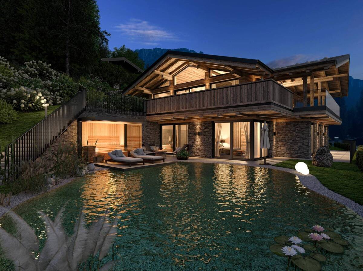 In einer ruhigen, leichten Hanglage in Waidring besteht eine Projektierung für ein exquisites Neubauanwesen, welches Modernität, Exklusivität und Gemütlichkeit vereint. Der aktuelle Bestand verfügt über eine Freizeitwohnsitzwidmung. Sie haben einen großartigen Ausblick auf die Loferer Steinberge und das Schigebiet Steinplatte Waidring befindet sich nur wenige Fahrminuten entfernt. Die aktuelle Projektierung bietet 304,62 m² Wohnfläche, eine Nutzfläche von 250,98 m² und 208,12 m² Balkon- und Terrassenflächen. Die Immobilie ist südlich ausgerichtet. Die geplanten Materialien für die Außenflächen sind aus hochwertigem Holz, Stein und Aluminium. Die Wohn- und Nutzfläche teilt sich auf drei Ebenen auf, welche bequem und barrierefrei durch den Personenaufzug erreicht werden können. Das Obergeschoss besteht aus dem äußerst großzügigen Wohnzimmer mit großer, offener Kaminstelle, die auch als Raumteiler dient. Zudem befindet sich hier eine moderne, offene Küche. Durch die große Fensterfront ist die Räumlichkeit sehr hell und freundlich. Auf dieser Etage sind auch eine praktische Speisekammer, eine separate Toilette sowie eine Büronische eingeplant. Das Obergeschoss ist umrahmt von den weitläufigen Balkon- und Terrassenflächen. Dadurch können Sie die Aussicht in jede Himmelsrichtung genießen. Über eine imposante Außentreppe gelangen Sie in das Erdgeschoss. Hier eröffnet sich ein großes Foyer mit Garderobe. Das Herzstück dieser Ebene ist das Masterschlafzimmer mit Zugang zum Garten und dem Schwimmteich. Angrenzend an das Masterschlafzimmer befindet sich das großzügige Masterbad und zwei separate Schrankräume. Im Erdgeschoss befinden sich außerdem drei weitere großflächige Schlafzimmer, welche jeweils ein Badezimmer inkludieren mit Dusche und Toilette. Auch von diesen Schlafzimmern gelangen Sie in den Garten bzw. auf die Terrasse. In das Untergeschoss gelangen Sie über die Tiefgarageneinfahrt, eine Treppe oder den Aufzug. Hier finden Sie Parkplätze für fünf Autos, einen Abstellraum, einen Sportgeräteraum und einen Weinkeller. Zudem bleibt noch Platz für zwei große Kellerräume, einen Wirtschaftsraum und für den Haustechnikraum. Alternativ kann diese große Fläche als Wellnessbereich mit Sauna genutzt werden. Der Außenbereich besticht durch die schöne Gartenfläche und die Außensauna mit Liegefläche direkt am Schwimmteich. Optional kann auch das Grundstück davor erworben werden. Der Kaufpreis inkludiert das Grundstück, den Altbestand und die Projektierung. Short Cuts: Grundstücksfläche 1.132 m², Konstruierte Fläche 763,72 m², Wohnfläche 304,62 m², Nutzfläche: 250,98 m², Balkon- und Terrassenfläche 208,12 m², Kellerfläche 244,95 m², Schlafzimmer 4, Badezimmer 4, ruhige, leichte Hanglage, südliche Ausrichtung, äußerst großzügiges Wohnzimmer, große, offene Kaminstelle, offene, moderne Küche, große Fensterfront, helle und freundliche Räume, Obergeschoss umrahmt von Balkon und Terrasse, barrierefrei dank Personenaufzug, großes Foyer mit Garderobe, großzügiges Masterschlafzimmer mit Masterbad, Schwimmteich mit Liegebereich, Außensauna, Abstellraum, Sportgeräteraum, Weinkeller, zwei große Kellerräume, Wirtschaftsraum, Haustechnikraum, Bau eines Wellnessbereichs möglich, Tiefgarage mit fünf Stellplätzen, Kaufpreis € 1.495.000,-, Verkaufsgegenständlich: das Grundstück mit Altbestand sowie Projektierung, HWB* Nach Aufklärung über die ab 01.12.2012 geltende generelle Vorlagepflicht eines Energieausweises, sowie Aufforderung zu seiner Erstellung wurde uns dieser vom Eigentümer bzw. Verkäufer noch nicht vorgelegt. Es gelten unsere Allgemeinen Geschäftsbedingungen.