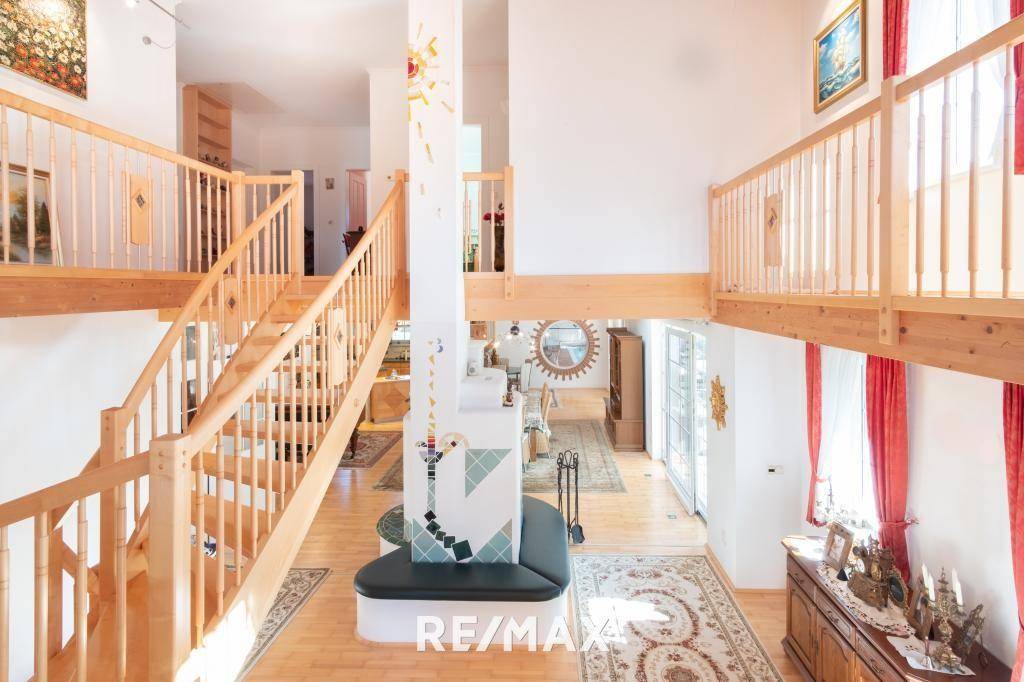 *** Herrschaftliche Villa für Anspruchsvolle *** Diese repräsentative Landhausvilla erfüllt alle Wohnwünsche und bietet einen grandiosen Ausblick. Ein idyllischer Garten in absoluter Ruhelage mit überdachter Südterrasse garantiert Privatsphäre im Erdgeschoß und die beiden Terrassen (einmal mit Süd- und einmal mit West-Ausrichtung) im Obergeschoß bieten einen sagenhaften Panoramablick in die umliegende Bergwelt. Lassen Sie sich vom opulenten Wohn-/Essbereich mit großzügiger Küche und heller Atmosphäre begeistern. Spätestens die außergewöhnliche Deckenhöhe und die imposante Galerie im Wohnbereich werden Sie überzeugen. Der freistehende, sehr stimmungsvolle Kachelofen mit umlaufender Sitzmöglichkeit ist ein Blickfang und sorgt für eine angenehme Atmosphäre. Der fantastische Wellnessbereich mit beleuchtetem Pool sorgt das ganze Jahr für Urlaubsstimmung. Übrigens: Selbst vom Wohnbereich aus, genießen Sie durch ein Rundfenster, einen fantastischen Blick ins wunderschöne Hallenbad. Weitere Highlights: Das Hallenbad bietet Platz für Sitzgelegenheiten, Ruhebereich (Relaxliege mit Wärmefunktion) sowie eine kleine Küche und wirkt durch die hohe Decke und die vielen Glasflächen, die großflächig zu öffnen sind, noch heller und größer. Eine Sauna sowie Dusche und WC vervollständigen den Wellnessbereich. Es gibt auch einen Abzug für den Wasserdampf. Der Smart-Home-Computer bedient u.a. die Alarmanlage und die automatischen, einbruchsicheren Jalousien (alle Fenster verfügen auch über Insektenschutz). Die Fußbodenheizung und der 600 Liter Pufferspeicher für das Warmwasser werden mit Erdwärme erhitzt. Es gibt eine zentrale Staubsaugeranlage, einen Wäscheabwurfschacht vom Bad im Obergeschoß bis in den Wäscheraum, nordseitig eine Bewässerungsanlage für den Rasen sowie eine Regenwasserzisterne. Über die ca. 40 m² große Doppelgarage mit automatischem Rolltor gelangen Sie natürlich trockenen Fußes ins Wohnhaus. Raumaufteilung: Erdgeschoß: 2 Vorräume, Bad mit Dusche und Fenster, separates WC mit Fenster, Garderobe, Büro, ca. 110 m² Wohn-/Essbereich mit großer Einbauküche, Wäscheraum und Speis/Abstellraum Auf dieser Ebene finden Sie außerdem ein sehenswertes Hallenbad mit ca. 128 m². Ausgestattet mit Dusche, Waschbecken, separatem WC, Teeküche, Sauna für ca. 6 Personen und Wärmeliege. Obergeschoß: Vorraum, 4 Schlafzimmer (davon 3 mit Balkon bzw. 2 mit begehbaren Schränken), große Terrasse mit herrlichem Ausblick, Bad mit Badewanne, Wäscheschacht, WC, Bidet und Fenster Untergeschoß: Auf ca. 200 m² befinden sich ein Fitnessraum mit Kaminanschluss, ein Party-/Hobbyraum, der Weinkeller, ein Gästezimmer, mehrere Stauräume und der Pooltechnikraum. Der Zugang ist vom Vorraum im Erdgeschoß als auch vom Hallenbad möglich. Lage: Schulen, Ärzte und Einkaufsmöglichkeiten befinden sich in St. Michael ob Bleiburg (ca. 2,5 km) und in Bleiburg (ca. 6 km). Die Bushaltestelle ist nur 180 Meter entfernt. In unmittelbarer Nähe befinden sich die Petzen, der Pirkdorfer See, viele Wander- und Radwege sowie unzählige Ausflugsmöglichkeiten. Mežica in Slowenien erreichen Sie in ca. 15 Minuten. Hier gehts zum Video Für weitere Informationen bzw. Besichtigungen stehen wir Ihnen jederzeit gerne zur Verfügung. Wir bitten um Ihr Verständnis, dass wir Besichtigungen nur mit Angabe Ihrer vollständigen Kontaktdaten vornehmen, da wir dem Abgeber gegenüber nachweisverpflichtet sind. Der Eigentümer wurde über das EAVG informiert und der Energieausweis ist in Arbeit. Alle Angaben laut Abgeber - Irrtümer vorbehalten. Nebenkosten Kaufvertrag: 3,5 % Grunderwerbsteuer 1,1 % Grundbuchseintragungsgebühr Kaufvertragserrichtung und Treuhandschaft lt. Tarifordnung des Vertragserrichters Provision 3 % vom Kaufpreis zzgl. Mwst. Dieses Angebot ist unverbindlich, freibleibend, Zwischenverwertung vorbehalten. WEITERE BILDER ERHALTEN SIE AUF ANFRAGE PER E-MAIL.Angaben gemäß gesetzlichem Erfordernis: Heizwärmebedarf: 48.0 kWh/(m²a) Klasse Heizwärmebedarf: B Faktor Gesamtenergieeffizienz: 0.84 Klasse Faktor Gesamtenergieeffizienz: A Alle Objekte finden Sie auch auf www.remax.at