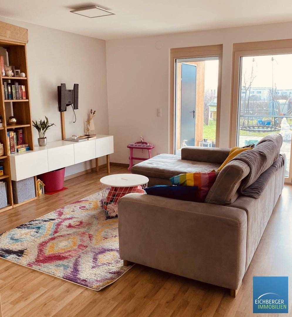 Modernes Reihenhaus in ökologischer Niedrigenergiebauweise und bewährter HARTL HAUS Qualität errichtet.Top moderne Ausstattung:• Wohnnutzfläche 114,26 m² / großes, sonniges Wohnzimmer, Abstellraum, WC und Technikraum. 3 Zimmer und Badezimmer mit Wanne und Dusche im OG • Luft-Wasser-Wärmepumpe inkl. Fußbodenheizung und Kühlfunktion • Photovoltaikanlage mit 2,12 kWp • 2 Autoabstellplätze pro Wohneinheit • überdachte Terrasse, Garten mit GeräteraumAblöse für Aufzahlung auf Premiumküche, Rollläden und diverse MöbelInfrastruktur / EntfernungenGesundheit Arzt <2.000m Apotheke <3.250m Klinik <4.000m Krankenhaus <3.250m Kinder & Schulen Schule <2.000m Kindergarten <500m Universität <3.500m Höhere Schule <3.750m Nahversorgung Supermarkt <2.750m Bäckerei <500m Einkaufszentrum <2.750m Sonstige Geldautomat <1.750m Bank <3.000m Post <1.750m Polizei <3.500m Verkehr Bus <250m Autobahnanschluss <2.750m Bahnhof <3.250m Flughafen <1.250m Angaben Entfernung Luftlinie / Quelle: OpenStreetMap