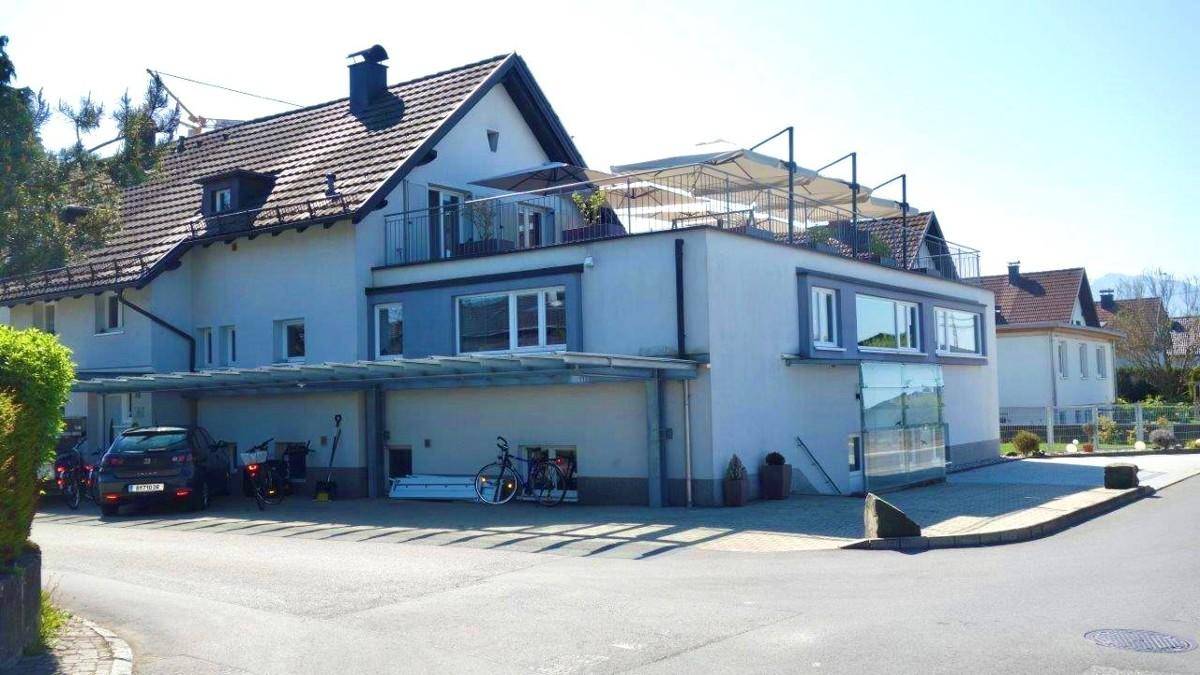 Diese sehr gepflegte Doppelhaus-Hälfte befindet sich in ruhiger Lage in Lauterach und punktet mit lichtdurchfluteten Räumen, einem großzügigen Raumkonzept und herrlichen, großen Sonnenterrassen. Das gegenständliche Haus besteht aus einem Altbestand, welcher im Jahre 2000 umfassend saniert wurde. Im selben Jahr erfolgte eine Erweiterung durch einen Anbau. Im Souterrain dieses Anbaues ist eine Bürofläche, welche als Home-Office genutzt oder vermietet werden kann. Der Wohnbereich des Hauses bietet Platz für die ganze Familie: Wohnen, Essen und Kochen sowie zwei Zimmer, ein Bad und das WC befinden sich im (erhöhten) Erdgeschoß, während die beiden Zimmer im Obergeschoß über ein eigenes Bad und eine weitere Küche verfügen. Vom Obergeschoß gelangt man auf die wunderschöne Dachterrasse, welche mit 90 m² Fläche viel Raum zum Entspannen, Sonnentanken und Genießen bietet. Von dieser Terrasse eröffnen sich herrliche Rundumblicke und romantische Sonnenuntergangs-Szenarien. Das Haus verfügt über eine weitere, im Erdgeschoß situierte Terrasse, welche sich aufgrund ihrer südostseitigen Ausrichtung ideal als Frühstücks-Terrasse anbietet. Die schöne Markise spendet dabei angenehmen Schatten. Der sehr gepflegte Garten ladet zum Spielen und Verweilen ein, und die großzügigen Hochbeete ermöglichen Hobbygärtnern Entfaltungsspielraum in der Kultivierung von eigenem Gemüse oder Kräutern. Das Haus ist unterkellert. Im Keller befinden sich zwei Lagerräume, die Technik sowie die Waschküche, welche einen eigenen Ausgang in den Garten hat. Nordseitig des Hauses sorgen überdachte Außenflächen für angenehmes Parken im Trockenen und gestatten das Erreichen des Hauseinganges trockenen Fußes. Auch hinsichtlich Betriebskosten überzeugt dieses attraktive Wohnobjekt: die hauseigene Photovoltaik-Anlage generiert große Mengen an Öko-Strom, welche ins Netz eingespeist werden und einen lukrativen Ertrag erwirtschaften. Die jährlichen Erstattungen übersteigen derzeit deutlich die Stromkosten, welche durch den Betrieb der Erdwärmepumpe entstehen.