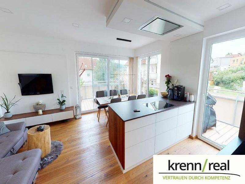 Attraktiv ausgestattete Eigentumswohnung mit Terrasse Wichtiger Hinweis: Beziehbar ab Februar 2022! Für eine rasche Bearbeitung schreiben Sie bitte auch Ihre Postleitzahl und Straße in das Notizfeld Ihrer Anfrage. Wir senden Ihnen sehr gerne unverbindlich ein kostenloses Detailangebot (weitere Fotos, genaue Adresse, Pläne, Abrechnungen, etc.) zu. Zum Verkauf steht diese von Licht durchflutete, ca. 78 m² große Wohnung in sonniger Süd-Lage. Erbaut wurde die Liegenschaft 2017 und ist selbstverständlich in bestem Zustand. Die professionellen Tischlerarbeiten schaffen eine sehr warme "Wohlfühlatmosphäre". Nach einem anstrengenden Tag bietet die ca. 20 m² große Terrasse mit Blick ins Grüne Ruhe und Entspannung. Beheizt wird mittels Pellets. Der Keller hat ca. 5,05 m². Zusätzlich gibt es für die Gemeinschaft auch einen Fahrradraum und einen Trockenraum. Haustiere sind nach Rücksprache mit der Hausverwaltung AREV herzlich Willkommen. Einkaufsmöglichkeiten, Ärzte, Schulen, Kindergärten, Apotheken und eine Bushaltestelle befinden sich in unmittelbarer Nähe. Holen Sie sich jetzt das Exposé und profitieren Sie von unserer 3D Besichtigung! Für Besichtigungen und Finanzierungshilfe steht Ihnen unser Backoffice-Team gerne zur Verfügung. Telefonisch erreichen Sie unser Büro MO bis FR von 8:30 - 13:00 Uhr. Kontakt: Krenn Real GmbH email: office@krenn-real.at 07242 210795 www.krenn-real.atAngaben gemäß gesetzlichem Erfordernis: Heizwärmebedarf: 28.0 kWh/(m²a) Faktor Gesamtenergieeffizienz: 0.65