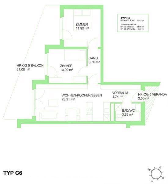 Attraktive Wohn- und Investmentmöglichkeit! Im schönen Bezirk Puntigam entsteht ein Wohnquartier mit 510 Wohnungen mit ca. 32 m2 - ca. 103 m2 Wohnfläche, das lokal, regional und auch überregional als ein besonderes Projekt mit architektonischen und planerischen Qualitäten überzeugt. Durch die Förderung sanfter Mobilitätsformen und durch die soziale Nachhaltigkeit wird das Wohnquartier ein Ort mit hoher Lebens- und Aufenthaltsqualität. Wohnungstyp C6: Wohnungen dieses Typs bieten ca. 58,43 m2 Wohnfläche und gliedern sich in einen Wohn-/Essbereich, zwei Schlafzimmer, sowie ein Badezimmer mit Dusche und WC, einen Balkon mit ca. 21,08 m2, eine Veranda mit ca. 2,50 m2 und ein Kellerabteil. Heizung: Fernwärme Zusätzlich zu den Wohnungen entstehen im Erdgeschoss ein Gemeinschaftsraum mit ca. 65 m2 Nutzfläche, sowie Gewerbeflächen für die Nahversorgung des Quartiers. Geplanter Baustart: Jänner 2021 Geplante Fertigstellung: 4. Quartal 2023 Freiflächen: Die Grünflächen des Wohnensembles und die lichtfreundliche Architektur machen das Wohnquartier auch im Inneren erlebbar. Balkone, private Veranden, ein großzügiger Innenhof bzw. die durchgehenden Dachterrassen sorgen für eine hohe Lebensqualität. Lage und Infrastruktur: Der Standort verfügt nicht nur über eine hervorragende Infrastruktur und Verkehrsanbindung, er bietet auch reichhaltige Möglichkeiten, die Freizeit sinnvoll zu nutzen, wie zum Beispiel beim Laufen oder Radfahren in den Murauen oder bei einem Besuch im nahegelegenen Golfclub. Freizeit und Einkaufsvergnügen lassen sich auch in Seiersberg oder dem Shopping Center West ideal verbinden. Auch das Cineplexx, die Strände der CopaCabana und der Schwarzlsee sind gut erreichbar. Die Wohnungen sind nicht nur für die Eigennutzung attraktiv, sie bieten auch Anlegern optimale Voraussetzungen, denn kleinere Wohneinheiten mit innovativen Rundum-Services entsprechen der demographischen Entwicklung in Graz ebenso wie den Ansprüchen an modernes Wohnen und liefern die Basis für ein sicheres Immobilien-Investment. Kosten für Eigennutzer: ab € 211.102,- Küche: € 4.800,- Tiefgaragenplatz: € 21.240,- Motorradabstellplatz: € 8.260,- Kosten für Anleger: ab € 178.900,- Küche: € 4.000,- Tiefgaragenplatz: € 18.000,- Motorradabstellplatz: € 7.000,- Weitere Immobilienangebote finden Sie unter www.rustler.eu/immobiliensuche