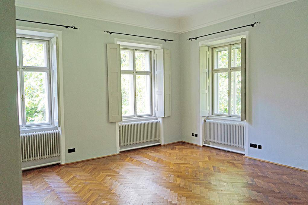 Die großzügige Wohnung befindet sich im 2. Stockwerk eines Barockschlosses, dessen Ursprung auf das 17. Jahrhundert zurückführt. Wohnfläche: ca. 230 m² Von allen Fenstern blickt man in den das Schloss umgebenden Park mit seinem alten Baumbestand. Der Wohnung sind 4 Außenparkplätze im Schlosshof zugeordnet.