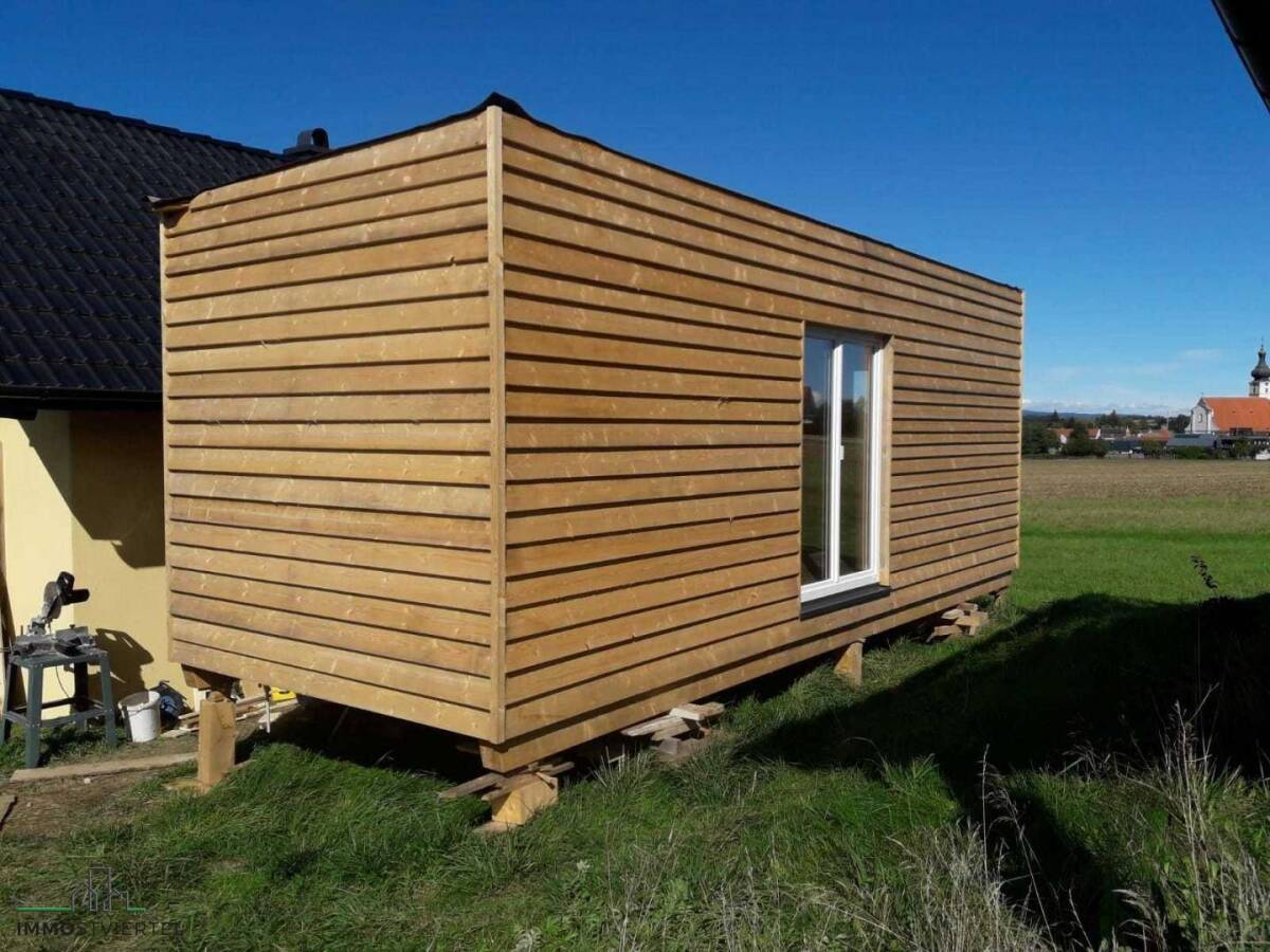 • Eigenes mobiles HOLZHAUS für SINGLES oder STARTWOHNUNG bzw. als Gartenhaus!• Das kleine Haus befindet sich derzeit am Rand eines Grundstücks in Mank.• Transportmöglichkeit gegeben• ein Wohn-Ess-Schlafraum unmöbliert mit ca. 18 m²• WC ist in einem separaten Raum• Innenmaße: 2,6m mal 7,9 m ca.• Konstruktion: Boden 20 cm Balken mit min. 16 cm Dämmung, Sparschalung, Dampfbremse, 19 mm Schichtboden Fichte!• Konstruktion: Außenwände: 10 cm Riegelkonstruktion, Außen Fichte, dahinter Windbremse, Dampfsperre, Nut und Federbretter Fichte Innenverkleidung• Konstruktion: Decke-Dach: 16 cm Balken 14 cm Dämmung, Dampfbremse, 19 mm Nut und Feder Fichtenbretter, oben Rauhschalung mit Dachabdichtung• 3 Scheibenverglasung• elektro Installationen, Schuko, Wasser und Kanalanschlüsse vorhanden• Nassbereich ausgestattet mit Waschbecken und Dusche / WC eigener Raum• Küche mit Anschlüssen vorhanden, Spüle, Kühlschrank inkl.• Beheizung mit Infrarotheizkörper ausgestattet• Hinweis: Gebäude mit einer Gesamtnutzfläche unter 50 m² sind von der Energieausweisvorlagepflicht ausgenommen!• ab sofort Verkaufsbereit!Infrastruktur / EntfernungenGesundheit Arzt <1.000m Klinik <5.500m Apotheke <6.000m Kinder & Schulen Schule <5.000m Kindergarten <5.500m Nahversorgung Supermarkt <500m Bäckerei <8.000m Sonstige Bank <5.500m Geldautomat <5.500m Post <5.500m Verkehr Bus <500m Bahnhof <6.000m Angaben Entfernung Luftlinie / Quelle: OpenStreetMap
