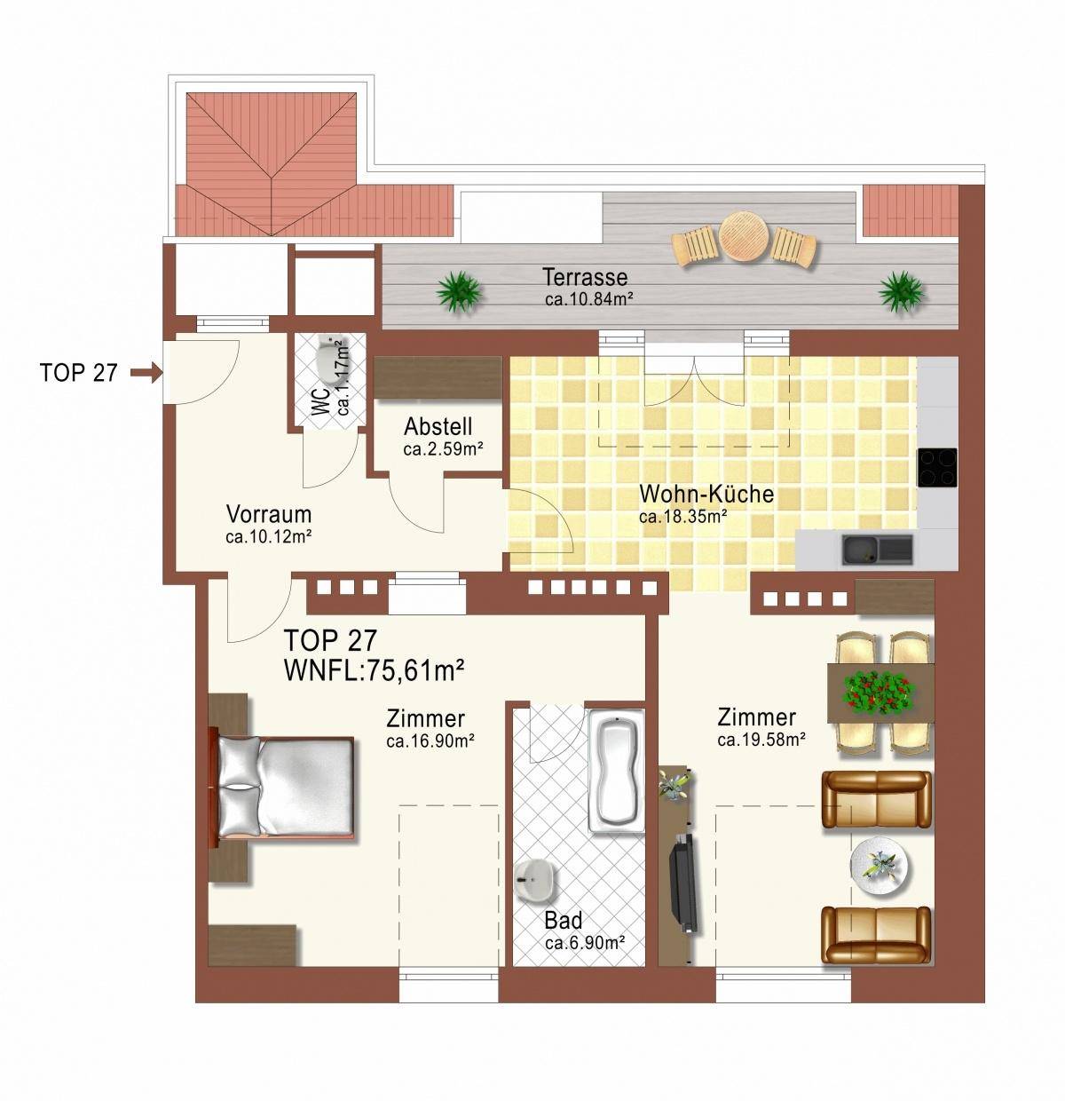 TERRASSE- Wohnküche mit 2 Zimmer um NUR € 753,00 inkl. BK und Mwst