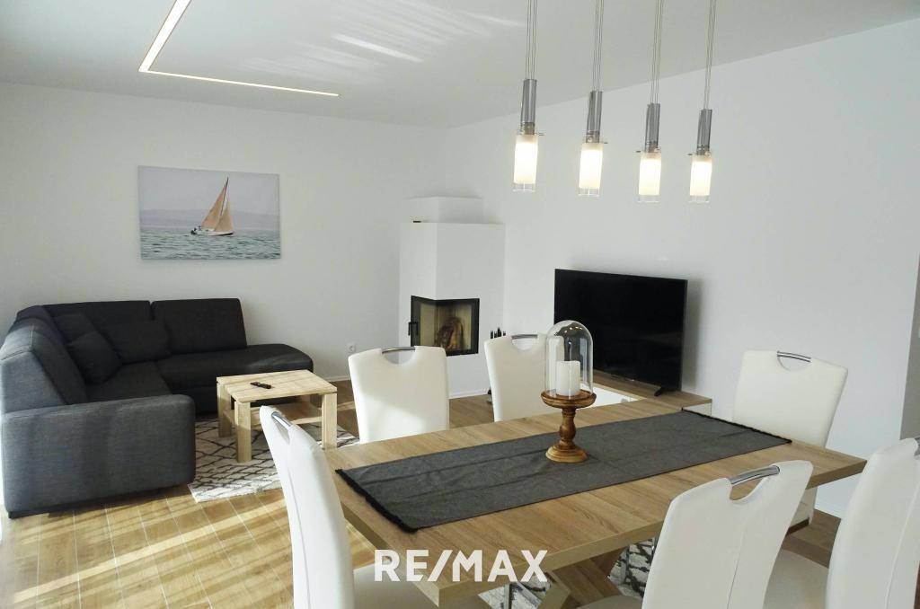 IHRE NEUE VIP - ADRESSE in Zell am See/ Schüttdorf mit Blick auf das Kitzsteinhorn Diese ca. 92 m² große 3-Zimmer-Wohnung befindet sich in einem Haus mit nur 4 Wohneinheiten. Das Haus wurde 2020 fertig gestellt. Die Wohnung wurde mit sehr viel Liebe zum Detail komplett eingerichtet. Sie gliedert sich in 2 Schlafzimmer, einem Wohnbereich mit Kamin und einer modernen Küche, einem Badezimmer mit Badewanne, einer Sauna mit Dusche, 2 Toiletten und einem Stauraum. Vom Wohnbereich hat man einen direkten Zugang zur Terrasse, wo man den herrlichen Blick auf das Kitzsteinhorn genießen kann. Ein Carport, ein freier Stellplatz und ein Keller gehören ebenfalls zur Wohnung. Für alle Bewohner des Hauses steht ein allgemeiner Skikeller zur Verfügung. Sowohl im Sommer als auch im Winter ist Zell am See eine Reise wert. Zell am See bietet in beiden Saisonen viele Möglichkeiten von Freizeitaktivitäten und zur Erholung vom Alltagsstress an. YOUR NEW VIP ADDRESS! in Zell am See/ Schüttdorf with view to the Kitzsteinhorn This about 92 m² large 3-room apartment is located in a house with only 4 units. The house was completed in 2020. The apartment is completely furnished with great attention to detail. It is divided into 2 bedrooms, a living area with fireplace and a modern kitchen, a bathroom with bathtub, a sauna with shower, 2 toilets and a storage room. From the living area you have direct access to the terrace, where you can enjoy the wonderful view of the Kitzsteinhorn. A carport, a free parking space and a cellar also belongs to the apartment. Also a general ski cellar is available in the house. In winter as well in summer Zell am See is worth trip. In both seasons Zell am See offers a wide range of leisure activities and recreation from everyday stress.Angaben gemäß gesetzlichem Erfordernis: Heizwärmebedarf: 40.0 kWh/(m²a) Klasse Heizwärmebedarf: B