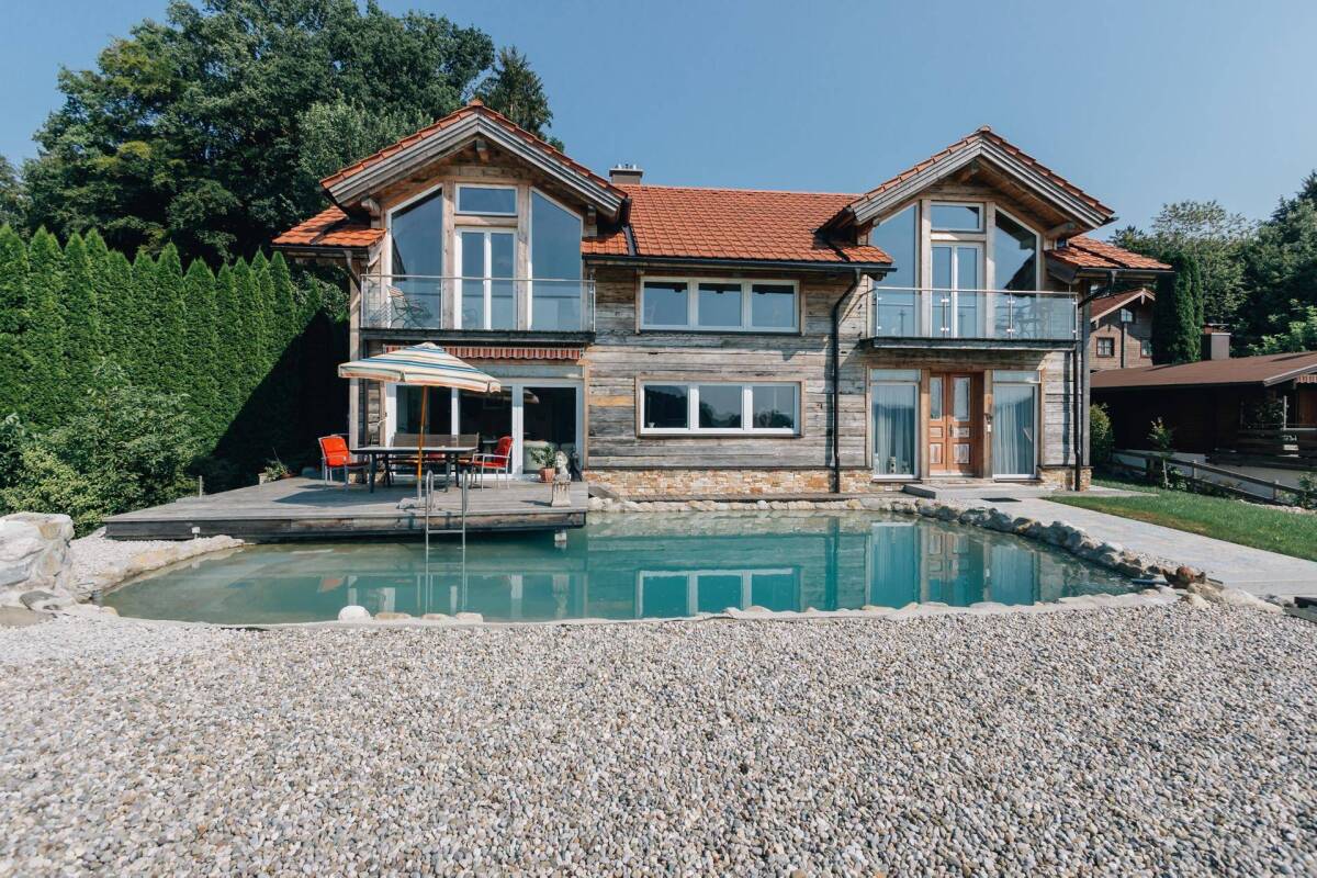 Wohnen mit Stil. Sich in ruhigem Ambiente entspannen, den einzigarten Ausblick genießen und doch in kurzer Zeit im Zentrum der Stadt Salzburg oder in München sein. Mediterranes Lebensgefühl vereint mich hochwertiger, einzigartiger Wohnqualität. Ein Zuhause wie ein Urlaubsdomizil. Ungestörter Blick in eine bezaubernde Landschaft und den Altstadtflair von Salzburg ganz in der Nähe. 35 km von Salzburg und 125 km von München entfernt, umgeben von Grün, in einer besonders sonnigen Gegend mit atemberaubender Aussicht präsentiert sich hier eine einzigartige Immobilie im kleinen Dorf Bergstetten mit derzeit nur 78 Einwohnern, im Gemeindegebiet von Eggelsberg. Umgeben von einer bezaubernden Landschaft, in sonniger Panoramalage in einem herrlichen, naturbelassenen Ambiente, liegt das mit Altholz erbaute Haus auf einer leichten Anhöhe. Eine wunderbare Kombination von Architektur und Landschaft. < So schön kann das Leben sein! < Das ist der erste Gedanke, wenn Sie den Luxus dieses Anwesens sehen. Der wunderbare Ausblick, der sich mit den Jahreszeiten definiert, liegt in einem 360-Grad-Winkel vor Ihnen. In den Sommermonaten bietet der nur 3 Kilometer entfernte malerisch gelegene Ibmer-Heratinger See eine Oase für Entspannung und Erholung, fernab vom Trubel des Alltags. Bedingt durch die Lage in der einmaligen Landschaft des Ibmer Moors. Eggelsberg ist eine wachsende Marktgemeinde im Bezirk Braunau, zwischen dem Naturjuwel Ibmer Moor, artenreichen Wiesen und naturbelassenen Wäldern, inmitten der lieblichen Landschaft des oberen Innviertels. Beste Infrastruktur für den täglichen Bedarf, wie Einkauf, Banken und Ärzte sowie Bildungsstätten für Ihre Kinder sind hier gegeben. Dieses wunderschöne Wohnhaus mit 360 Grad Panoramasicht befindet sich in dem Dörfchen Bergstetten im Gemeindegebiet Eggelsberg, nur 35 Kilometer von Salzburg entfernt. An einem Ort von sensationeller Schönheit, direkt in der Landschaft des Ibmer Moors, steht diese einzigartige Immobilie. Die traumhaft gelegene Villa fügt sich perfekt in die Landschaft ein. Bei diesem Projekt dominiert ganz klar die außergewöhnliche Architektur mit Altholz. Ausgewählte Details im Inneren umschmeicheln das finale Wohnkonzept. Das edle Anwesen beinhaltet über 278 m² Wohnfläche verteilt auf zwei Geschosse. Eine komplett abgeschlossene, großzügig gestaltete Wohnung im Erdgeschoss mit Ausgang auf die große Eichenholzterrasse mit dem angrenzenden Naturschwimmteich, welcher mit Flusssteinen gemauert wurde. Das Obergeschoss mit zwei abgeschlossenen Wohneinheiten erreicht man über die grandiose Eingangshalle. Das im Jahre 2015 erbaute Wohnhaus kennt keine Kompromisse und steht für Qualität durch und durch. Die hohen Qualitätskriterien haben schon bei der Auswahl der Grundstückslage, über Architektur und Handwerkerarbeiten begonnen, bis hin zur Ausstattung der Wohnungen, der Gestaltung der Außenanlage und der Planung der Parkmöglichkeiten. Dies alles garantiert Ihnen ein perfektes Wohlbefinden in dieser außergewöhnlichen Wohnimmobilie. Bei der Suche des richtigen Materials, wie auch beim Einsatz und der Verarbeitung des zum Teil mehrere Hundert Jahre alten Holzes, war die jahrelange Erfahrung und Kreativität des Verkäufers unentbehrlich um die ganze Schönheit des alten Holzes zur vollen Geltung zu bringen. Seine einzigartige Ästhetik und der besondere Charme, den das verwendete Holz ausstrahlt ist unersetzbar und einmalig. Fast unvorstellbar, woher all die ehrwürdigen „Baumaterialien“ kommen. Jedes Brett, jeder Balken erzählt eine Geschichte. Gereift an unterschiedlichen Orten, gezeichnet von Spuren der Zeit, als hätten sie nur gewartet, wieder für einzigartige Atmosphäre zu sorgen, belebt und bewohnt zu werden. Moderner Baustil mit Altholz und ökologische Technik verleihen dieser Immobilie ihren besonderen Reiz! Die Inneneinrichtung harmoniert mit dem einzigartigen Gebäude, in dem sie untergebracht ist. Der Stil ist der des Bauherrn, Möbel, Accessoires und Sofas haben außergewöhnliche Muster, die so schön sind, weil sie exzessiv und farbenfroh sind. Die intelligente Technik im Haus macht Ihr Leben komfortabel. Das ganze Haus verfügt über eine Fußbodenheizung, die mit einer umweltfreundlichen, kostengünstigen Luftwärmepumpe gesteuert wird und für einen angenehmen Lebensstil sorgt. In diesem Haus dreht sich alles um zeitlose Schönheit. Hochwertige Materialien, Formen und Farben treffen auf zahlreiche Kombinationsmöglichkeiten. Leichtigkeit und Vielseitigkeit sind die wichtigsten Merkmale. Der Verkäufer dieses wunderschönen Hauses mag schönes Wohnen. Diese Leidenschaft fürs Einrichten wird Ihnen beim Kauf dieser Residenz zugutekommen. Ihr Zuhause kann sowohl Rückzugsgebiet als auch kreatives Arbeits- und Wohnumfeld werden. Sie werden überrascht sein, wenn Sie bei einer Besichtigung die Atmosphäre und die erstklassige Ausstattung persönlich erleben. Möchten Sie Ihre eigenen Ideen und Eindrücke zu diesem Haus sammeln? Dann vereinbaren Sie jetzt Ihren privaten Kennenlerntermin!