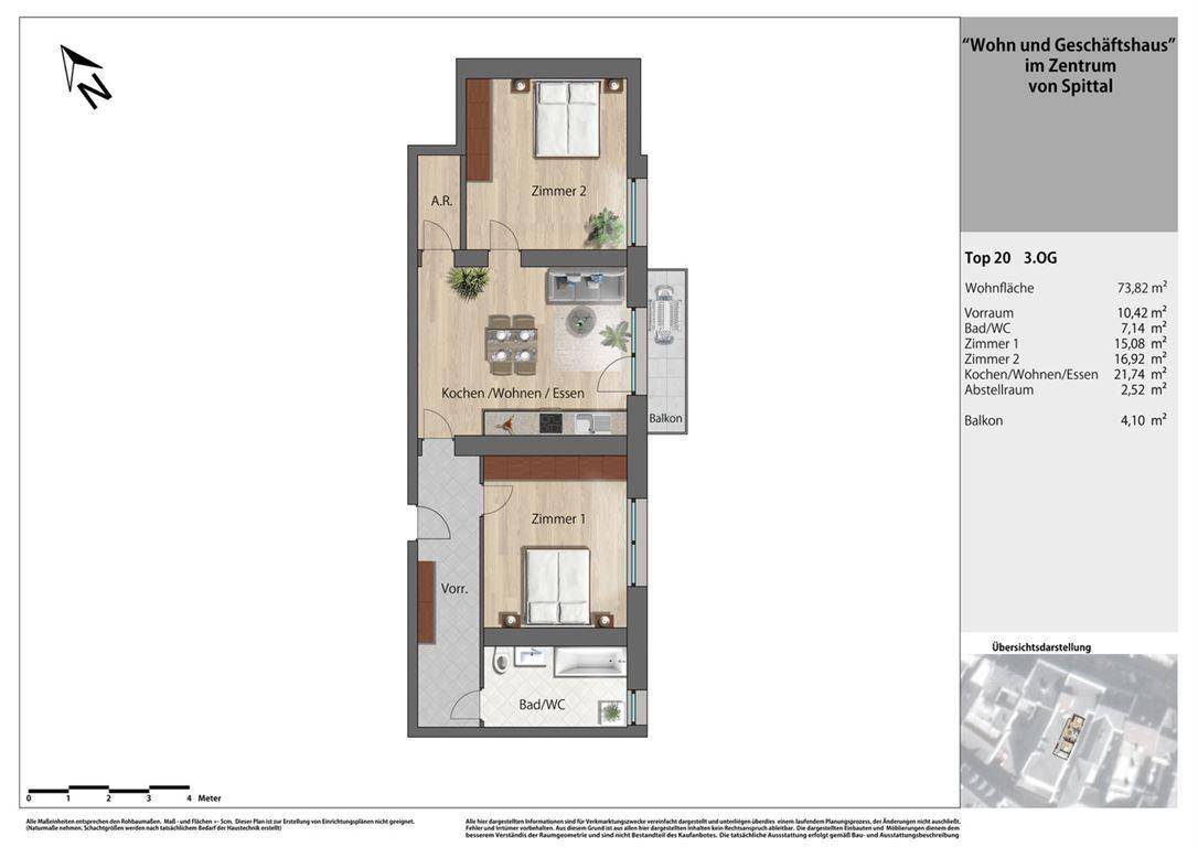Die barrierefreie, sehr helle und funktionell geplante Innenstadtfamilienwohnung im Erstbezug Top 20 befindet sich im dritten Stockwerk des Wohn- und Geschäftshauses - Hauptplatz 17. Die Wohnung besteht aus einem Vorraum samt Garderobe, einem Sanitärbereich mit WC & Dusche, zwei Schlafzimmer sowie einem großen Wohn-Essbereich samt Balkon und einer Küchenzeile. Zur Wohnung gehört ebenso noch ein separater ca. 8,5 m² großer, Abstellraum im selben Stockwerk.