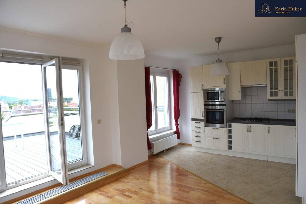 in zentraler Lage, nahe dem Bahnhof Weidling, wird diese helle Wohnung in kompletter Ruhelage vermietet. Sie befindet sich in einem 4 Apartmenthaus im Dachgeschoss und wurde komplett neu renoviert. Fussläufig sind Schulen, Ärzte, öffentliche Anschlüsse und Supermärkte erreichbar.Die Wohnung befindet sich im 2. Obergeschoss und hat eine Wohnfläche von 58 m2 mit 2 großen Terrassen mit 47 m2 Aussenfläche. Auf der traumhaften Dachterrasse hat man einen unsagbaren Blick von den Weinbergen bis zum Stift Klosterneuburg und nach Bisamberg bzw.Korneuburg.Die Wohnung teilt sich wie folgt auf:Eingangsbereich mit Garderobe sonnendurchflutetes Wohn-Esszimmer mit moderner offenen Küche und Ausgang auf die große Terrasse Badezimmer mit Wanne, Waschbecken und WM-Anschluss extra WC großes Schlafzimmer mit Ausgang auf die Westterrasse AbstellraumDer Wohnung ist ein Kellerabteil zugeordnet. Monatl.Betriebskosten inklusive Internet € 236,--. Möglichkeit zur Anmietung eines Garagenplatzes um € 80,--zzgl. 20% UST.Das Apartment wird bis zu 5 Jahre befristet vermietet. Im Mietpreis sind die Betriebskosten inkludiert.Infrastruktur / EntfernungenGesundheit Arzt <500m Apotheke <500m Krankenhaus <2.000m Klinik <5.500m Kinder & Schulen Schule <500m Kindergarten <500m Universität <2.500m Höhere Schule <5.500m Nahversorgung Supermarkt <500m Bäckerei <500m Einkaufszentrum <3.500m Sonstige Bank <500m Geldautomat <500m Post <1.000m Polizei <1.500m Verkehr Bus <500m Straßenbahn <4.000m U-Bahn <6.000m Bahnhof <500m Autobahnanschluss <3.000m Angaben Entfernung Luftlinie / Quelle: OpenStreetMap