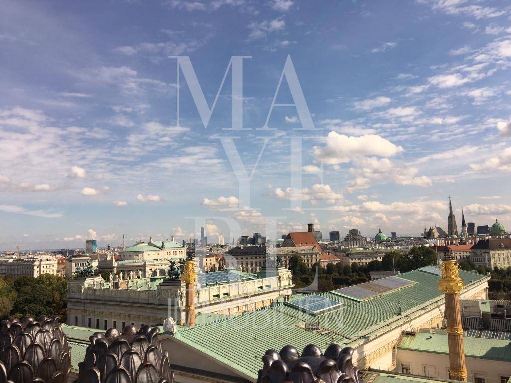 exklusive, voll möbllierte Dachgeschoßwohnung mit Terrasse in Ringstrassenpalais, nähe Rathaus, Rundumblick über Wien von Terrasse! Die Wohnung wird befristet vermietet mit Verlängerungsoption KEINE KURZZEITMIETE RAUMAUFTEILUNG 1. Ebene: Vorzimmer mit Garderobe, Wohnsalon (ca. 42 m²) mit südseitiger Terrasse und Kamin, voll ausgestattete Küche, 1 Schlafzimmer, WC, Duschbad, 2. Ebene: geräumige Galerie, Masterbedroom mit großem Bad (Wanne und WC), kleine Terrasse 3. Ebene: grosse Terrasse mit Dachgarten und Wienblick (360 Grad) AUSSTATTTUNG Möblierung, Kamin, Vollholzparkett und Marmorböden, Klimaanlage, Videogegensprechanlage, Alarmsystem, Pflege und Instandhaltung der Bewässerungsanlage des Dachgartens ist in Miete inkludiert sehr gute öffentliche Verkehrsanbindung Straßenbahn 1, 2, 46, 71, D sowie U2, U3 Volkstheater und U2 Rathaus in Gehdistanz **----------** exclusiv and fully furnished apartment in Palais, behind Parliament and Rathauspark terrific 360 degree view over Vienna from roofterrace NO SHORT-TERM LEASE level 1: hall with wardrobe, parlor with 42 m2 with acess to southsided terrace and fireplace, fully equipped kitchen, 1 bedroom, toilet, showerbath level 2: spacious gallery area, masterbedroom with bathroom (tub, toilet) ensuite, smaller terrace level 3: big rooftop terrace with roofgarden and 360 degree view over Vienna fully furnished, wooden and marbled flooring, aircondition, Video-Intercom, alarmsystem, the garden maintainance for the roof garden is inlcuded in rent! very good public transport connection Tram 1, 2, 46, 71, D as well as U2, U3 Volkstheater and U2 Rathaus in walking distanceAngaben gemäß gesetzlichem Erfordernis: Miete € 4392 zzgl 10% USt. Betriebskosten € 235,27 zzgl 10% USt. Umsatzsteuer € 462,73 ------------------------------------------------------------------ Gesamtbetrag € 5090