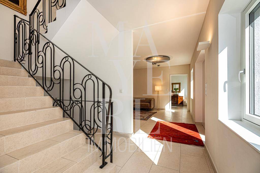 KOMPLETT SANIERTE, SEHR MODERNE UND GERÄUMIGE FAMILIENVILLA, tolle Lage- im Grünen und doch zentral in Klosterneuburg Das Haus wurde im Jahre 2014 komplett neu saniert RAUMAUFTEILUNG: UG: Foyer mit Garderobe und Gäste WC, Abstellraum, sehr grosse und voll ausgestattete Küche mit Zugang zum Wintergarten und in den vorderen Teil des Gartens, offener Wohn-Essbereich mit Kamin, ein zweites Wohn-oder Gästezimmer mit Zugang zu Wintergarten, Wellnessbereich mit Sauna, WC und Dusche, Stiegenaufgang zum OG: 5 (Schlaf) zimmer- davon 3 sehr grosse Zimmer, sehr geräumige, begehbare Garderobe, 1 Bad mit Wanne und Dusche, 1 Duschbad, 2 seperate WC UG: 1 Arbeits/Hobbyraum, Keller, Waschmaschinenanschluss, Technikräume, Zugang zur Garage AUSTATTUNG: Fliesen und Parkettböden, Beschattung, Fussbodenheizung, Gaszentralheizung, Kamin, Sauna, Garage und Carport, schöner Pool und grosser Garten mit ca. 2550 m2. Ausgezeichnete Infrastruktur! ________________ completly refurbished, modern and spacoius family home with pool, big garden and wintergarden perfectly located in green area but very central at the same time Floorplan: ground level: spacious hall, guest toilet and wardrobe. storage room, very big and fully equipped kitchen with accesss to front-garden and wintergarden, spacoius and open plan living-dining area with fire place and access to wintergarden, family or guest room, wellness area with sauna, shower and toilet, staircase to upper floor with: 5 (bed) rooms, 3 of them very spacious, very big walk in wardrobe, 1 showerbath, 1 bathroom with tub, 2 seperate toilets basement: workshop (for hobbies, etc...), storage room, connections for washer and dryer, technical rooms fixtures and fittings: wooden and tiled flooring, floorheating, fire place, central heating with gas, wine cooler, sauna, garage and carport, very nice pool and big garden (2550 m2) great infrastructure with bakery, supermarket, etc in closest vicinity