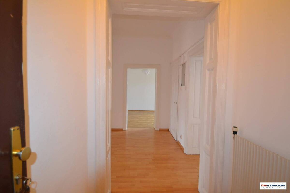 Die gemütliche Altbauwohnung (3. OG. ohne Lift) in einem ruhigen Familienhaus in der Schillerstraße gliedert sich in:Vorzimmer mit Laminatboden, große Wohnküche (inkl. Küchenzeile) mit Laminatboden, 3 große Zimmer (davon 2 Zimmer extra begehbar) mit alten Parkettböden und alten weißen Flügeltüren.Wirtschaftsbalkon in den begrünten ruhigen InnenhofVerfliestes Wannenbad, separates WC, große Abtstellkammer Die Ausstattung der Wohnung ist qualitativ hochwertig und geschmackvoll Gas-Etagenheizung (monatliche Kosten ca. € 150,00)Kaution: 3 BruttomonatsmietenKeine Ablöseunbefristete Hauptmiete, jederzeit beziehbar, Besichtigungen auch am Wochenende möglich Ein garantiert angenehmes Wohnklima und Wohnumfeld erwartet Sie.Die Wohnung ist frisch gestrichen, alle Türen und Fenster überarbeitet und in einem ausgesprochen schönen Zustand!Beste Infrastruktur rundum, alle Einkäufe des täglichen Bedarfs (Billa, Apotheke,...) fußläufig ums Eck Jederzeit bezugsfertigWir weisen darauf hin, dass zwischen dem Vermittler und dem Auftraggeber ein wirtschaftliches Naheverhältnis besteht. Der Vermittler ist als Doppelmakler tätig.Infrastruktur / EntfernungenGesundheit Arzt <250m Apotheke <250m Klinik <750m Krankenhaus <1.750m Kinder & Schulen Schule <250m Kindergarten <250m Universität <250m Höhere Schule <1.250m Nahversorgung Supermarkt <250m Bäckerei <500m Einkaufszentrum <1.000m Sonstige Bank <250m Geldautomat <250m Post <500m Polizei <1.000m Verkehr Bus <250m Straßenbahn <250m Autobahnanschluss <4.500m Bahnhof <1.500m Flughafen <9.500m Angaben Entfernung Luftlinie / Quelle: OpenStreetMap