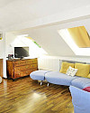 Das Apartment bietet den einen einzigartigen Mix aus modern und historisch. Es bietet in zwei separierten Schlafzimmern Platz für maximal acht Personen. Die Wohnung überzeugt durch Altbaucharme und die moderne und komplette Einrichtung. Absolutes Highlight neben Fischgrättparkett und Luxusbad stellt der Balkon mit Ausblick auf einen der historischen Wiener Hinterhöfe dar.