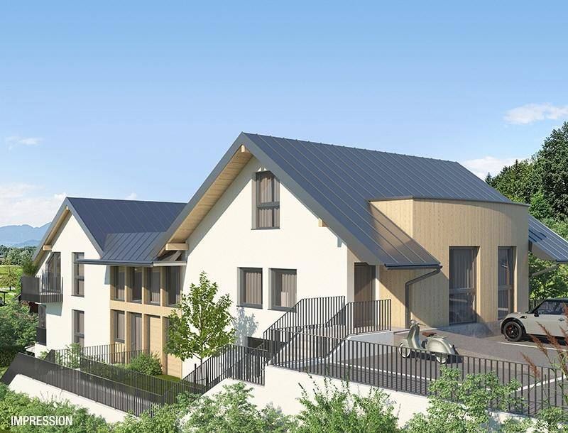 In diesem attraktiven Wohnhaus mit nur sechs modernen 3- und 4-Zimmer-Eigentumswohnungen samt Aufzug lassen sich Wohnträume verwirklichen: Angenehm ruhig und in bester Nachbarschaft wohnen Sie an den Ausläufern des Voggenberges im Ortsteil Siglmühle – dem Bergheimer "Villenviertel" – mit herrlichem Blick auf die Fischach und die malerische Teichlandschaft, ins Grüne und in die Bergwelt. Qualität und Komfort sind in den durchdacht geplanten Wohnungen mit 74,4 m² bis 97,38 m² Wohnfläche ideal vereint und auch der schönen Hanglage wird architektonisch sehr ansprechend Rechnung getragen. Die 3-Zimmer-Wohnungen begeistern mit großzügigem Wohnraum, in dem Kochen, Essen und Relaxen auf offenem Grundriss angesiedelt sind. Auf den gut geschnittenen Außenflächen – Gärten und Terrassen bzw. Balkonen – gönnen Sie sich eine sonnige Auszeit vom Alltag und schwelgen in der reizvollen Aussicht. In den beiden vielseitigen Schlafzimmern kommen Sie zur Ruhe. Das hochwertig ausgestattete Bad und ein Abstellraum komplettieren das Ensemble. Die 4-Zimmer-Wohnungen haben alles, was Familien sich wünschen: Der gemeinsame Wohnbereich ist gut dimensioniert und lässt sich toll zonieren in Küche, Essplatz und Couchlandschaft. In den Schlafzimmern hat jeder seinen persönlichen Rückzugsraum, der individuell gestaltet werden kann. Außerdem gibt es jeweils einen Abstellraum, ein familientaugliches Bad sowie ein Gäste-WC.