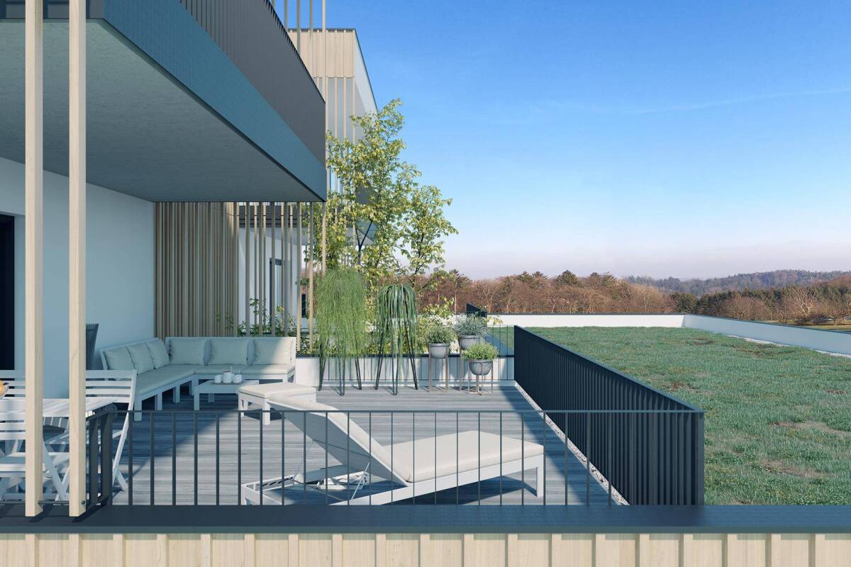 Sonnige Neubau-Wohnung kreativ geplant und exakte ausgeführt - jeder Zentimeter der 3 Zimmer großen Obergeschoßwohnung mit 82 m² im Sonnleitenhof ist durchdacht. Der einladende Vorraum, der großzüge Koch-, Ess-, Wohnbereich, die Diele, die in den privaten Teil der Wohnung in die Schlafzimmer und in das Badezimmer führt. Die Panorama-Schiebetür führt auf die 70 m² große Terrasse und macht die Wohnung noch einmal um die Hälfte der Wohnfläche größer. Der Ausblick ist atemberaubend. Zu jeder Wohnung führt der Lift, das Kellerabteil und der Garagenplatz sind im Preis inkludiert. Das neue Zuhause ist sonnig, barrierefrei und voller Behaglichkeit, mit modernen Holzfassaden und Ziegelwänden, Eichen-Dielen-Parkettböden, ökologischer Biogas-Fußbodenheizung, Glasfaseranschluss, Photovoltaik und wertigen Materialen. 5000 m² Garten und herrliche Aussicht inklusive.