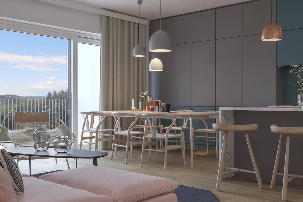 Die 80m² große Wohnung mit top-aufgeteilten 3 Zi, einem großzügigen Wohn- Essbereich, mit edlen Eichenparkett-Dielenböden, einer wohligen Fußbodenheizung, Glasfaseranschluss und 26m² großen Balkon, der sich einem herrlichen Ausblick von den Fischbacher Alpen bis zum Wildoner Berg öffnet. Der Wert der Aussicht ist unbezahlbar, der Blick unverbaubar. Das alles gibt es barrierefrei, inkl. Lift, Kellerabteil und Carportplatz mit 5.000 m² Garten im Umfeld von Graz.