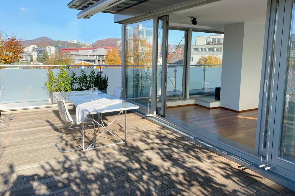 Ganz oben, ruhig und trotzdem in urbaner Lage, kommt man hier in den Genuss perfekter Lebensqualität. Das moderne 3-Zimmer-Penthouse ist zwischen Salzachkai und Maria Plain gelegen und begeistert daher nicht nur mit hervorragenden Aussichten und bester Infrastruktur, sondern verfügt ebenso über eine tolle Ausstattung. Der loftartige Lebensraum mit einer Wohnfläche von ca. 154 m² welche sich über das Dachgeschoss des gesamten Gebäudes erstreckt, ist ideal in Richtung West- und Ost positioniert und bietet daher bestmöglichen Lichteinfall von morgens bis abends. Raumhohe Panoramafenster dienen als perfekte Bühne und verwöhnen mit hervorragenden Aussichten in die Umgebung. An heißen Sommertagen sind die bereits eingebauten elektrischen Rollläden sowie die elektrisch betriebene Markise auf der West-Terrasse, perfekte Schattenspender. Herzstück dieser Wohnoase bildet der großzügige Ess- und Kochbereich mit Kochinsel welcher ebenso genügend Platz für gesellige Stunden mit Freunden oder Familie bietet. Zusätzliche praktische Features dieses gut geplanten Wohnraumes sind die makellos integrierten Einbauschränke, ein geschickt gelöster Kleiderflur mit angrenzendem Wirtschaftsraum samt WM-Anschluss und Waschbecken, ein extra WC und ein weiterer kleiner Abstellraum. Zur hochwertigen Ausstattung zählen außerdem der durchgehend verlegte Echtholzparkett, Fußbodenheizung und Zugangsmöglichkeit in die Wohnung via Fingerprint. Ebenso ist dieser Wohneinheit ein Garagenplatz zugehörig. Für weitere Fragen bzw. zur Vereinbarung von Besichtigungsterminen stehen wir Ihnen unter der Telefonnummer +43 662 431545 zur Verfügung. Nebenkosten bis zu 10 % abhängig vom Kaufpreis, von der Vertragserrichtung, der grundbücherlichen Sicherstellung des Kaufpreises und dem Verwandtschaftsverhältnis.