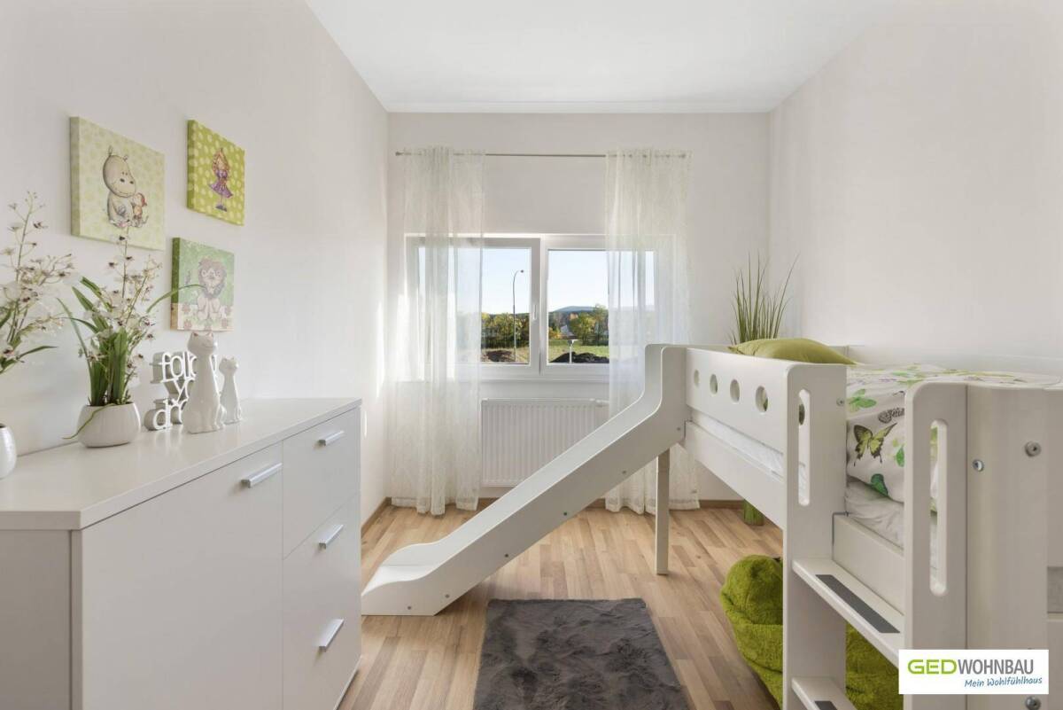 Das Erdgeschoss besteht aus einem lichtdurchfluteten offenen Wohn-, Koch- und Essbereich mit Zugang auf die Terrasse und in den Garten. Auf dieser Ebene befinden sich das Vorzimmer, ein Gäste-WC, der Technikraum und ein zusätzlicher Abstellraum, der auch gut als Büro genutzt werden kann. Im Obergeschoss befinden sich drei getrennt begehbare Schlafzimmer mit einer Galerie (Option für Schrankraum), sowie ein großzügiges Badezimmer mit Fenster. Die Terrasse und der südseitig ausgerichtete Garten laden zum Entspannen und Seele baumeln lassen ein.Ihr schlüsselfertiges GED-Wohlfühlhaus umfasst folgende Ausführungen & Services: Innentüren Sanitärausstattung (Waschbecken, Armaturen, Badewanne, Dusche, WCs) Parkett- sowie Laminatböden und Fliesen Feinspachtelung der Wand- & Deckenflächen (Innenwände) inklusive AnstrichFassade Bauendreinigung Hochwertige Ausstattung Exklusive Parkett- und Laminatböden in allen Wohn- u. SchlafräumenVollholzstiege aus Niederösterreich Moderne Badezimmer mit 2 Waschbecken, Badewanne, Dusche und WCGäste-WC im ErdgeschoßFußbodenheizung im ErdgeschoßWohnraumbelüftungsanlage nach dem neuesten Stand der TechnikEingezäunter Garten2 PKW AbstellplätzeIhre GED-Vorteile auf einen Blick Provisionsfrei, direkt vom BauträgerNiedrigste Energiekosten durch Passivbauweise (ca. € 300,-/ Jahr) Schlüsselfertig – einziehen & wohlfühlen Kaufpreis abzüglich höchster Landesförderung: min. € 40.000,- Passivhausförderung des Landes NÖ + eventuelle Familienförderung Erste Zahlung erst bei SchlüsselübergabeAngenehmes Wohnklima durch Holzmassivbauweise und lichtdurchflutete RäumeVerwendung nachhaltiger & nachwachsender Rohstoffe Verwirklichen Sie Ihren Traum vom eigenen Haus mit Garten – auch ohne Eigenmittel! Wir unterstützen Sie gerne in allen Fragen zur Finanzierung & Förderung! GED-Wohlfühlhäuser werden schlüsselfertig errichtet – provisionsfrei direkt vom Bauträger.Alle GED Wohlfühlhäuser sind klimaaktiv Gold zertifiziert und werden in Passivbauweise aus hochwertigen, ökologischen Materialien errichtet. Das Passivhaus ist ein gut durchdachtes Energiewunder, das darauf abzielt, durch optimale Wärmedämmung und intelligente Belüftungssysteme passive Energiequellen wie die Sonne und sogar die Körpertemperatur seiner Bewohner zu nutzen.Die massive Bauweise in Kreuzlagenvollholzelementen samt Wärmedämmung (Energiekennzahl unter 10 kWh/(m²a)) und das zentrale Lüftungsgerät mit einer Luft-Wasser-Wärmepumpe im Außenbereich helfen mit, ein optimales Wohnklima zu schaffen und die Heizkosten so niedrig wie möglich zu halten.Infrastruktur / EntfernungenGesundheit Arzt <2.000m Apotheke <350m Kinder & Schulen Schule <350m Kindergarten <500m Universität <1.150m Nahversorgung Supermarkt <50m Bäckerei <300m Einkaufszentrum <450m Sonstige Bank <175m Geldautomat <175m Post <425m Polizei <6.500m Verkehr Bus <125m Bahnhof <500m Autobahnanschluss <1.375m Angaben Entfernung Luftlinie / Quelle: OpenStreetMap