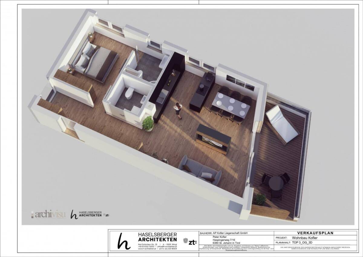 Beschreibung Erstbezug: TOP 03Diese traumhafte Wohnung mit einer tollen Raumaufteilung könnte bald Ihr neues Zuhause seinDie Wohnung befindet sich im 1. Obergeschoss eines 3 Parteienhauses in sehr schöner sonnigen Lage in Kirchdorf.Sie verfügt über einen großen offenen Wohn- und Essbereich, 1 Badezimmer mit Dusche/ WC, 1 helles Schlafzimmer, 1 Gäste WC/ Wirtschaftsraum sowie einem großzügigen Dielen-, Eingangsbereich mit Lift.Ausgestattet ist diese Wohnung mit sehr schönen Landhausdielen und Fliesenböden, Fußbodenheizung, sowie mit modernen hochwertigen Holztüren - "rein gehen und wohlfühlen".Zur Wohnung gehört 1 Stellplatz und 1 Kellerabteil. / pro Stellplatz € 17.000.-http://www.ap-kofler.atAllgemeine Informationen: Kirchdorf lässt Sommer und Winter jedes Sportlerherz höher schlagen.Golfplatz, Reitanlage, Skifahren, Langlauf oder Biathlon, Nordic Walking, Radeln, Wandern z.B. im Naturerholungsgebiet Grießbachklamm oder auf einer der vielen Almen. Laufstrecke, Spazier - und Radwanderweg sowie die Loipe sind direkt vor der Haustür.Top Schigebiete wie die Waidringer- Steinplatte, Saalbach - Fieberbrunn, St. Johann, Kitzbühel , oder die Schiregion Ellmau - Kaiserwelt sind in 10 - 20 Minuten erreichbar.Eine hervorragende Infrastruktur, sozial sowie kulturell, bietet Ihnen die gesamte Region mit Orten wie Kitzbühel und St. Johann, welche in wenigen Autominuten erreichbar sind.Alles für den täglichen Bedarf finden Sie natürlich auch im schönen Kirchdorf in Tirol.Entfernungen:München: 114 km, Salzburg: 65 km, Innsbruck 96 km, Gardasee: 345 kmWir freuen uns darauf Ihnen dieses schöne Neubauprojekt 2020 in Kirchdorf persönlich näher vorzustellen.Alle in diesem Angebot enthaltenen Angaben, Abmessungen und Preisangaben beruhen auf Angaben des Verkäufers (oder eines Dritten). Der Makler übernimmt hierfür keine Haftung. Eine Weitergabe des Exposés bedarf unserer ausdrücklichen Zustimmung. Es gelten unsere Allgemeinen Geschäftsbedingungen.Infrastruktur / EntfernungenGesundheit Arzt <1.500m Apotheke <2.500m Krankenhaus <3.000m Kinder & Schulen Schule <2.500m Kindergarten <2.500m Nahversorgung Supermarkt <2.000m Bäckerei <2.000m Sonstige Bank <2.000m Post <2.000m Geldautomat <3.000m Polizei <2.500m Verkehr Bus <500m Bahnhof <3.000m Flughafen <3.000m Angaben Entfernung Luftlinie / Quelle: OpenStreetMap