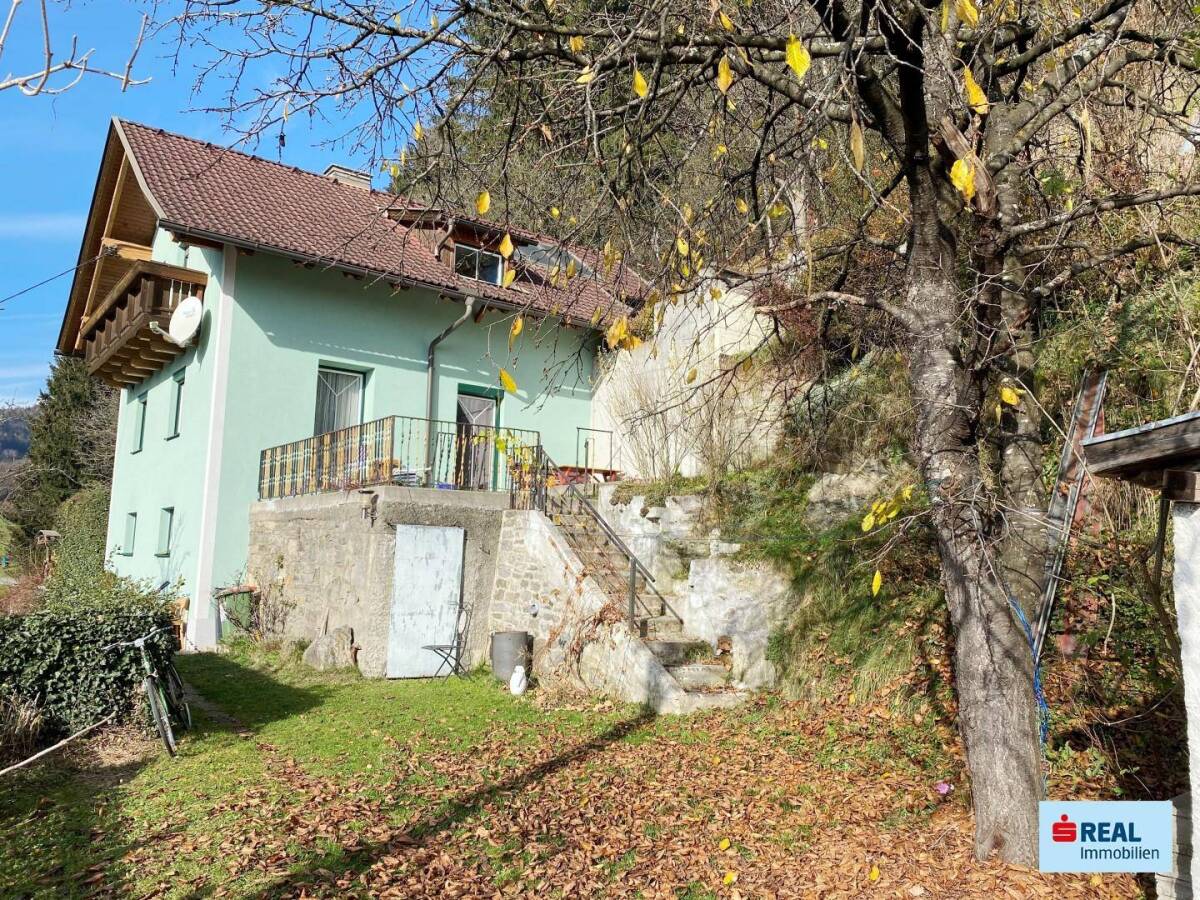 In idyllischer Bergblicklage befindet sich dieses gemütliche und großzügig aufgeteilte Wohnhaus mit schönem Garten, Wald und eigener Wasserquelle am Ende der Zufahrtsstraße. Im Kräutergarten oder auf der Sonnenterrasse können die Natur und die absolute Ruhe genossen werden. Ein wahres Naturparadies vor der Eingangstür. Im Wohngeschoss befinden sich eine hochwertige Einbauküche, Wohnzimmer, Gästezimmer, Badezimmer und sep. WC. Der Terrassenplatz wurde vorbereitet und kann nach Ihrem Wünschen fertiggestellt werden. Das Dachgeschoss bietet mit 3 Zimmern ausreichend Platz für die Familie. Das Kellergeschoss ist ausgebaut. Direkt hinter dem Haus finden Sie ein Gartenhaus, eine Holzscheune sowie einen Waldanteil mit eigener Wasserquelle. Eine Garage sowie zusätzliche Autoabstellplätze runden das Angebot ab.RaumaufteilungInfrastruktur / EntfernungenGesundheit Arzt <10.000m Apotheke <7.000m Kinder & Schulen Schule <4.000m Höhere Schule <9.000m Nahversorgung Supermarkt <500m Sonstige Post <7.000m Geldautomat <7.000m Bank <7.000m Polizei <7.000m Verkehr Bus <1.000m Bahnhof <1.000m Angaben Entfernung Luftlinie / Quelle: OpenStreetMap